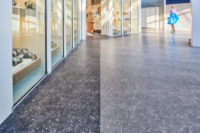 Jan: “Ooit gold Crimpenhof als lichtend voorbeeld voor een overdekt winkelcentrum. In 1992 werd dit zelfs wereldwijd erkend door het International Council of Shopping Centers (ICSC), de internationale brancheorganisatie van winkelcentra. De mix van lokale zaken en grote ketens trok toen wekelijks ca. 65.000 bezoekers en dat is veel voor een plaats met nog geen 30.000 inwoners”. Sinds de pandemie ziet Jan dat de winkeliers het zwaarder hebben. Shoppers gaan vaker naar andere winkelcentra in de buurt of het centrum van Rotterdam. “De inrichting is gedateerd en er is ook wat leegstand. Ik ben bezig met het maken van een heel nieuw winkelcentrum. Voor de rebranding heb ik marketingbureau WF Communicatie in de arm genomen. Denk aan nieuwe visuele communicatie: logo’s en decoratie, maar ook ander meubilair, sanitaire voorzieningen en nieuwe vormen van communicatie. Om zo opnieuw ondernemers aan te trekken. Een nieuwe vloer is daarbij de belangrijke eerste stap. Die biedt het fundament voor de rebranding. Wij willen graag een ruimtelijke en rustige omgeving voor onze bezoekers creëren en dat was met de oude vloer niet mogelijk.”