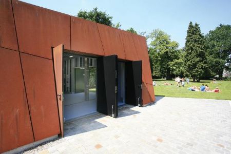 Vandaag heeft het park met ecologische zwemvijver zich duidelijk binnen haar stedelijke omgeving geprofileerd. Dat gebeurt onder meer door de drie parkpaviljoenen bekleed met cortenstaal, die zich duidelijk onderscheiden van de bestaande bebouwing rondom, zowel qua materiaalgebruik als qua vormgeving. Dat vandalismebestendig materiaal leent zich uitermate voor de toepassing van vrije vormen en sluit zowel qua kleur als qua veroudering – het ondergaat natuurlijke oxidatie – aan bij het mooie parklandschap. De hellende daken zijn als vijfde gevel bovendien voorzien van een sedumdak.