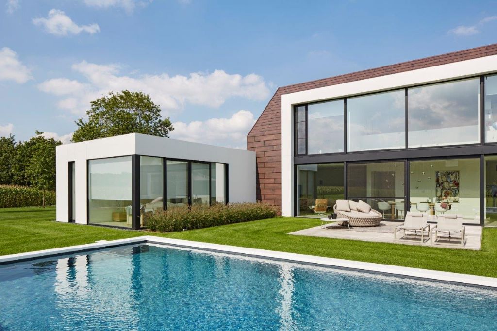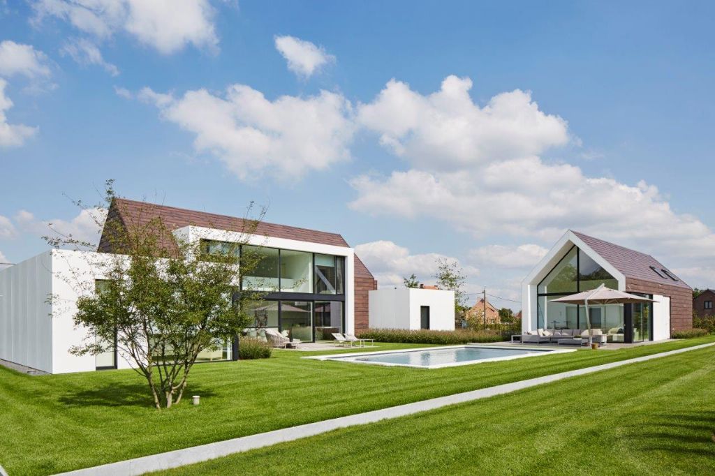 “De grootste uitdaging was om de gestelde eisen door te voeren naar 1.000 kubieke meter ”, steekt architect Frederik Wattecamps van AIM van wal. “Het gaat hier immers om een zonevreemde woning in landbouwgebied.” De ontwerpers pijnigden hun hersenen, met als geslaagd resultaat een woning die in februari 2015 opgeleverd werd. De woning bestaat uit onder meer uit drie slaapkamers en bijhorende badkamers, een kantoorruimte en een speelkelder. Aan de woning grenst een poolhouse met aansluitende garage. Een gascondensatieketel, ventilatiesysteem en een zonneboiler maken het technische plaatje compleet.