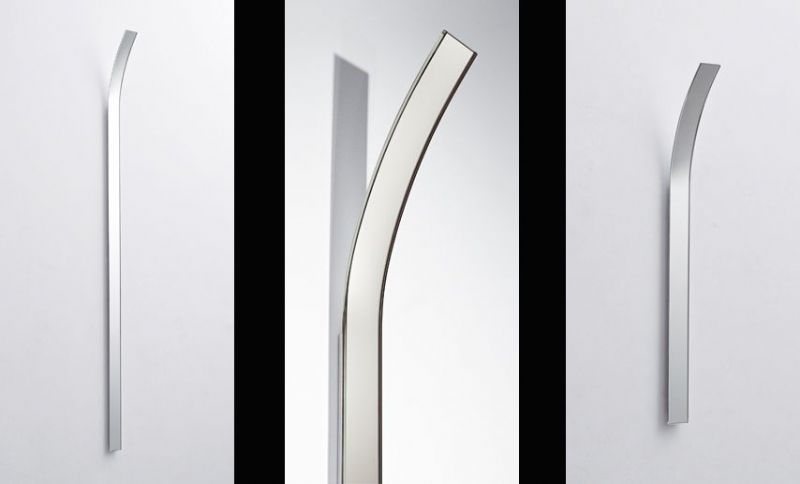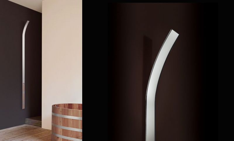 Een van de spiegels, de nieuwe creatie “Spline”, leunt tegen de muur waardoor je de mogelijkheid hebt om er je volledige figuur in te zien. Een kader rond het silhouet van een vrouwelijk lichaam. Of is het iets anders? Dankzij de witte, functionele verlichting en meerkleurige sfeerverlichting is de spiegel letterlijk en figuurlijk een blikvanger van formaat.