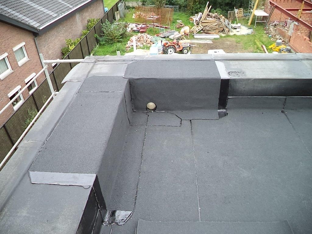 “Bij het dichten van een dak moet je ervoor zorgen dat de (bitumineuze) dakbanen perfect aansluiten op de andere elementen van de dakconstructie. Dit soort verbindingen situeert zich onder meer ter hoogte van aanpassingen op een bestaand dak, de aansluiting tussen een nieuw dak en een oud dak, moeilijke koppelingen die aangewerkt worden met een vloeibare dichting … Gezien het gebruik van verschillende soorten dichtingsmembranen op platte daken dien je rekening te houden met de verenigbaarheid van de gebruikte materialen. Voor bitumen elementen onderling vormt dat uiteraard geen probleem, maar ook de aansluiting tussen bitumen en kunststof moet verzekerd worden. Een goed voorbeeld zijn spouwmuurslabben. Soms voorziet men bitumineuze spouwslabben, maar als je te maken hebt met een EPDM-slab moet je deze op een of andere manier zien te verkleven met de bitumineuze dakdichting. In de TV 244 van het WTCB staan verschillende verbindingstechnieken omschreven. Complexere aanhechtingen kan je realiseren met behulp van vloeibare kunstharsen.”