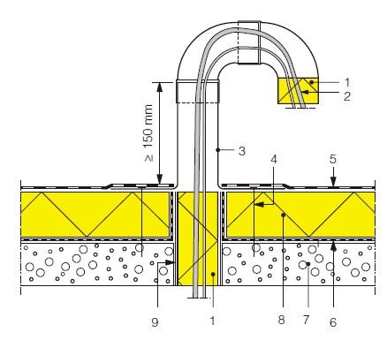 De opstand zou bij voorkeur ook luchtdicht moeten zijn, want anders neemt de windbelasting op de afdichting gevoelig toe. Bij bitumineuze dampschermen en afdichtingen dient het dampscherm voldoende hoog tegen de opstand gekleefd of gelast te worden, zodat men de eigenlijke afdichting ermee kan verbinden en de thermische isolatie volledig ingesloten is.”