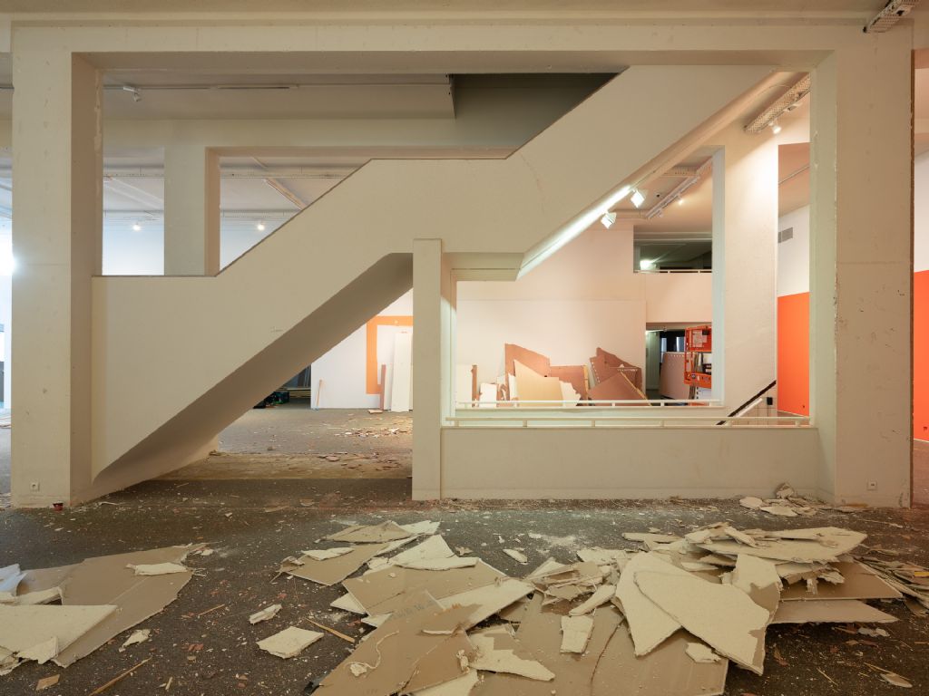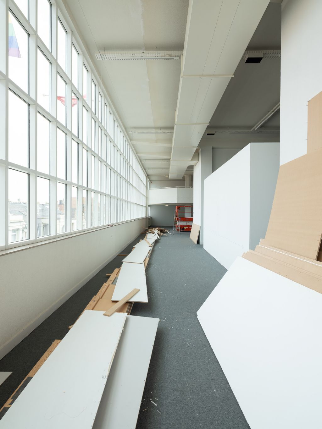 “Het project tracht om via een radicale lezing van het bestaande een gepast antwoord te vinden op een complex ontwerpvraagstuk. Niet door nieuwe elementen, nieuwe materialen aan te voeren, maar door substractie en herschikking. Een nieuwe werkvorm werd aangewend die de verwachtingen ten volle inloste: terwijl er op bureau en met de curatoren in de maquette verschillende scenario’s werden uitgetest, werden er op locatie muren verplaatst. Dit resulteerde in een dynamische werf waarbij het team van Mu.ZEE nauw betrokken was. Het ‘bouwen’ begon niet pas nadat alles gestript was, maar al vanaf dat de eerste plaat werd losgemaakt”, aldus Lionel Devlieger.