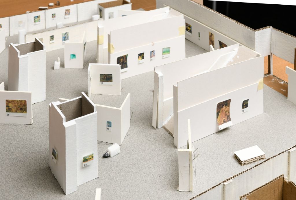 Rotor kreeg de opdracht de bestaande indeling van het museum aan te pakken, en een nieuwe scenografie te ontwikkelen voor een toen nog te maken selectie uit de permanente collectie. “Onze officiële aanstelling gebeurde eind januari 2021, vier maanden voor de opening”, aldus Lionel Devlieger. “Het kwam er op aan geen tijd te verliezen. Ons werk begon met een zorgvuldige lectuur van het bestaande gebouw; een recent uitgevoerde historische studie was hierbij erg nuttig, maar beperkte zich tot het deel van Eysselinck. We lieten bijkomende boringen uitvoeren in de later toegevoegde wanden om hun samenstelling te kennen; we maakten zorgvuldige opmetingen van elementen die vrijkwamen bij de eerste ontmantelingswerken, zoals de verkleuringspatronen op het vast tapijt dat jaren bedekt was gebleven door een inmiddels versleten multiplex-vloer. Een eerste ontwerp werd gemaakt op basis van een aantal kernobservaties, en in permanent overleg met het team van Mu.ZEE. Uitvoeringsdetails werden gaandeweg uitgetekend in functie van nieuwe inzichten en ontdekkingen, die we dikwijls pas vaststelden tijdens de werken zelf.”