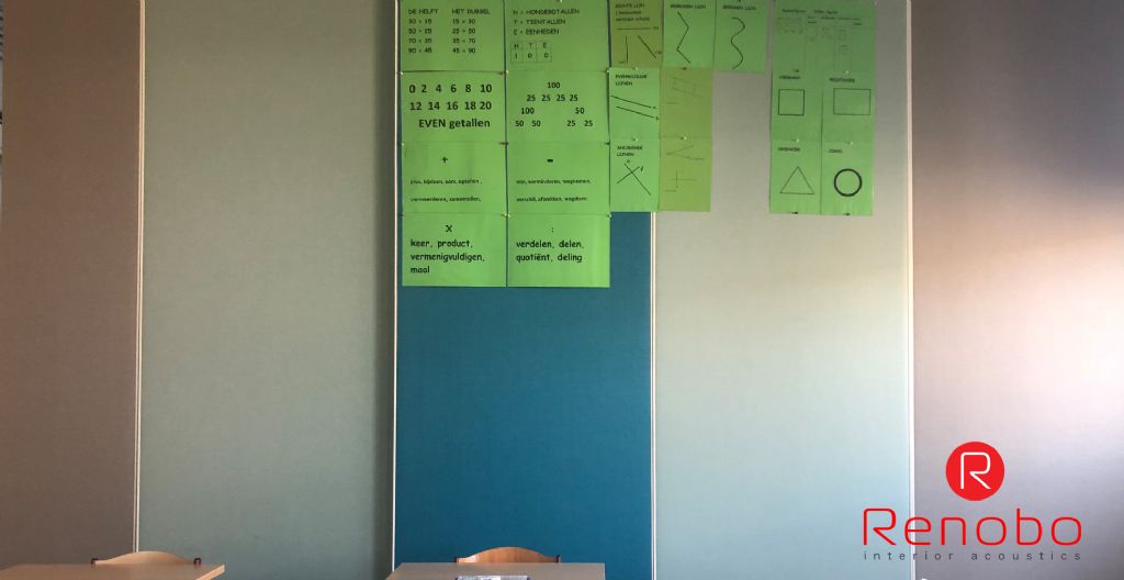 In schoolgebouwen wordt vaak gebruik gemaakt van prikborden. Deze hangen zowel in de klaslokalen als in de refters en gangen. Deze prikborden hebben helaas geen akoestische werking.
