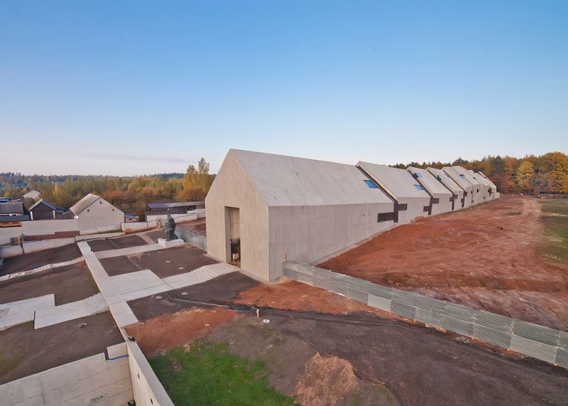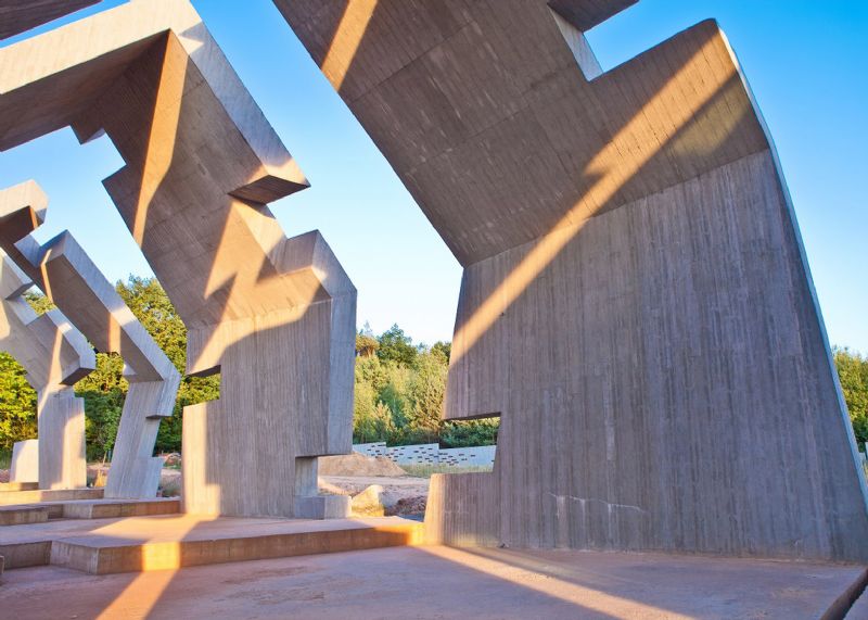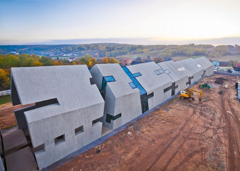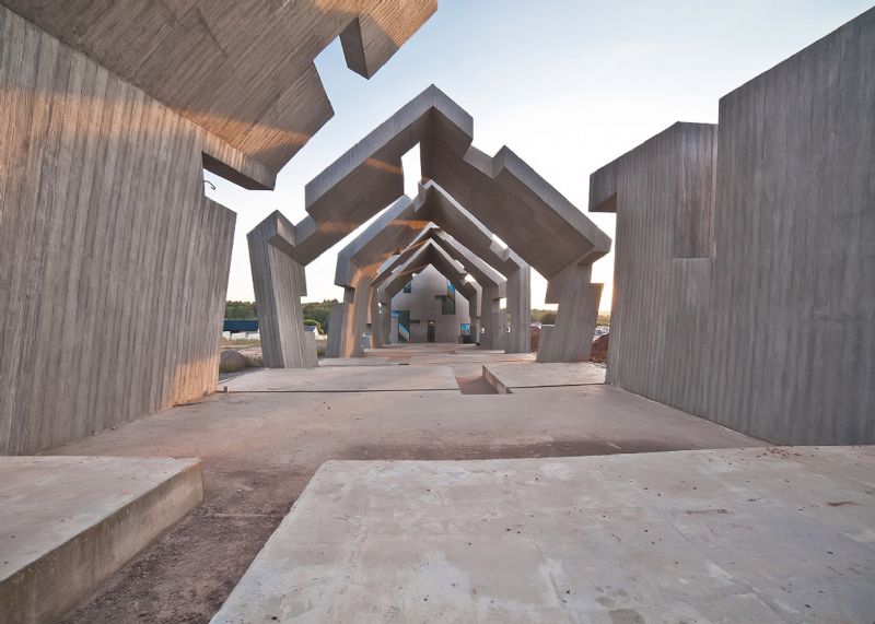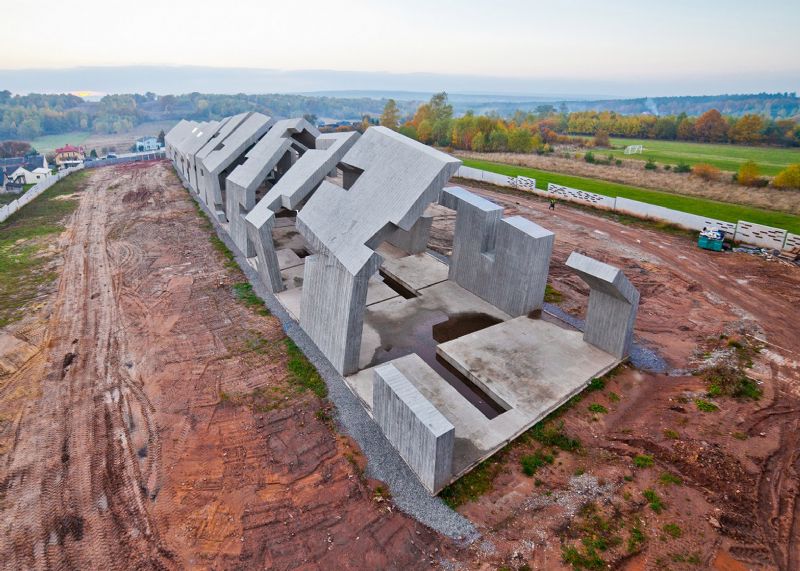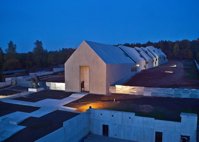Mirosław Nizio en zijn studio Nizio Design International ontwierpen het gebouw als een traditionele hut die stapsgewijs verslechtert en verkruimelt tot stof. Dit symboliseert de verbranding van het dorp. De vierde fase van de bouw, die nu voltooid is, bestond uit het optrekken van de betonnen structuren van deze vormen.