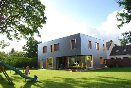 Een hedendaags, praktisch passiefhuis is het resultaat. Het eenvoudige en compacte volume werd naar de tuin opengewerkt.