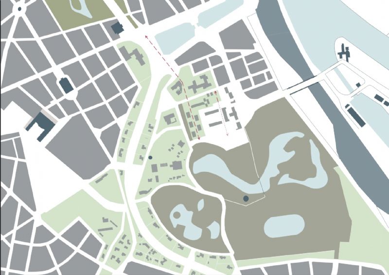 Aan de andere kant bestaat de mogelijkheid echter ook dat de huidige opdeling definitief is. Daardoor kon er geen sprake zijn van een ontwerp dat pas compleet zou zijn na een verdere ontsluiting van de kazerne. Het geheel moest dus architecturaal en stedenbouwkundig volledig op zichzelf kunnen staan.
