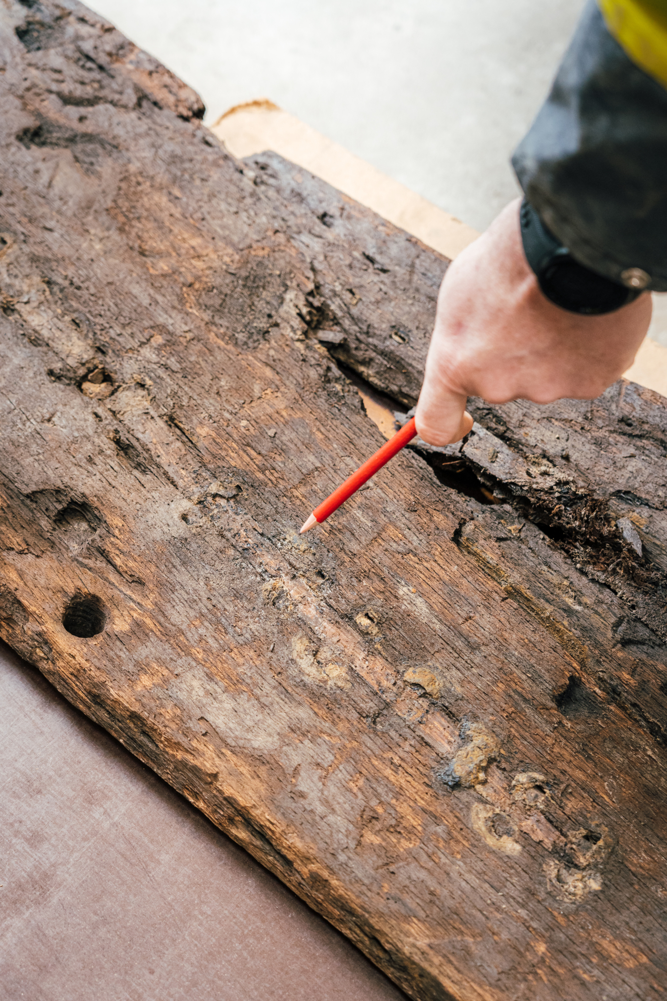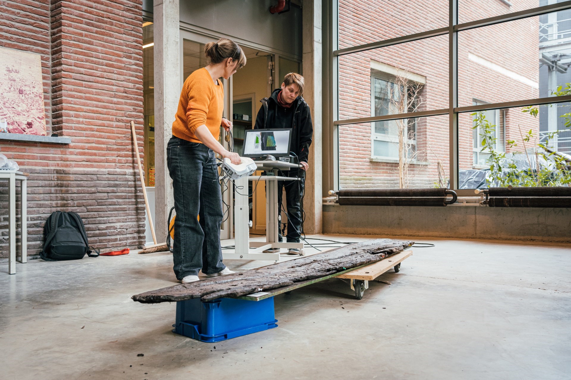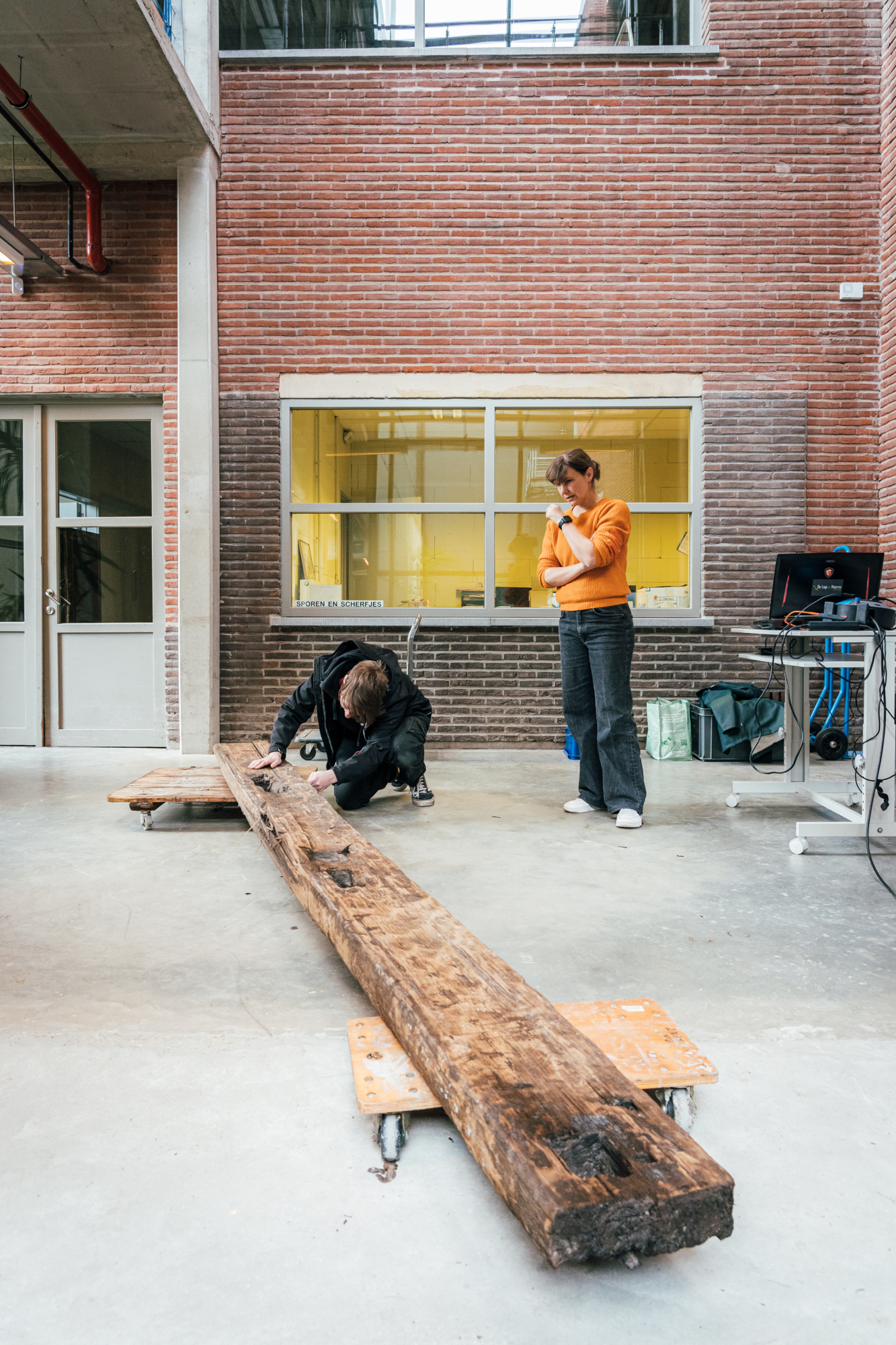 De houten balken zijn opvallend goed bewaard. Ze krijgen deze week allemaal een 3D-scan om dan later het huis, of op zijn minst de fundering, te reconstrueren. Er werden ook enkele stalen genomen om met een jaarringanalyse de leeftijd van het hout tot op het seizoen te kunnen bepalen.
