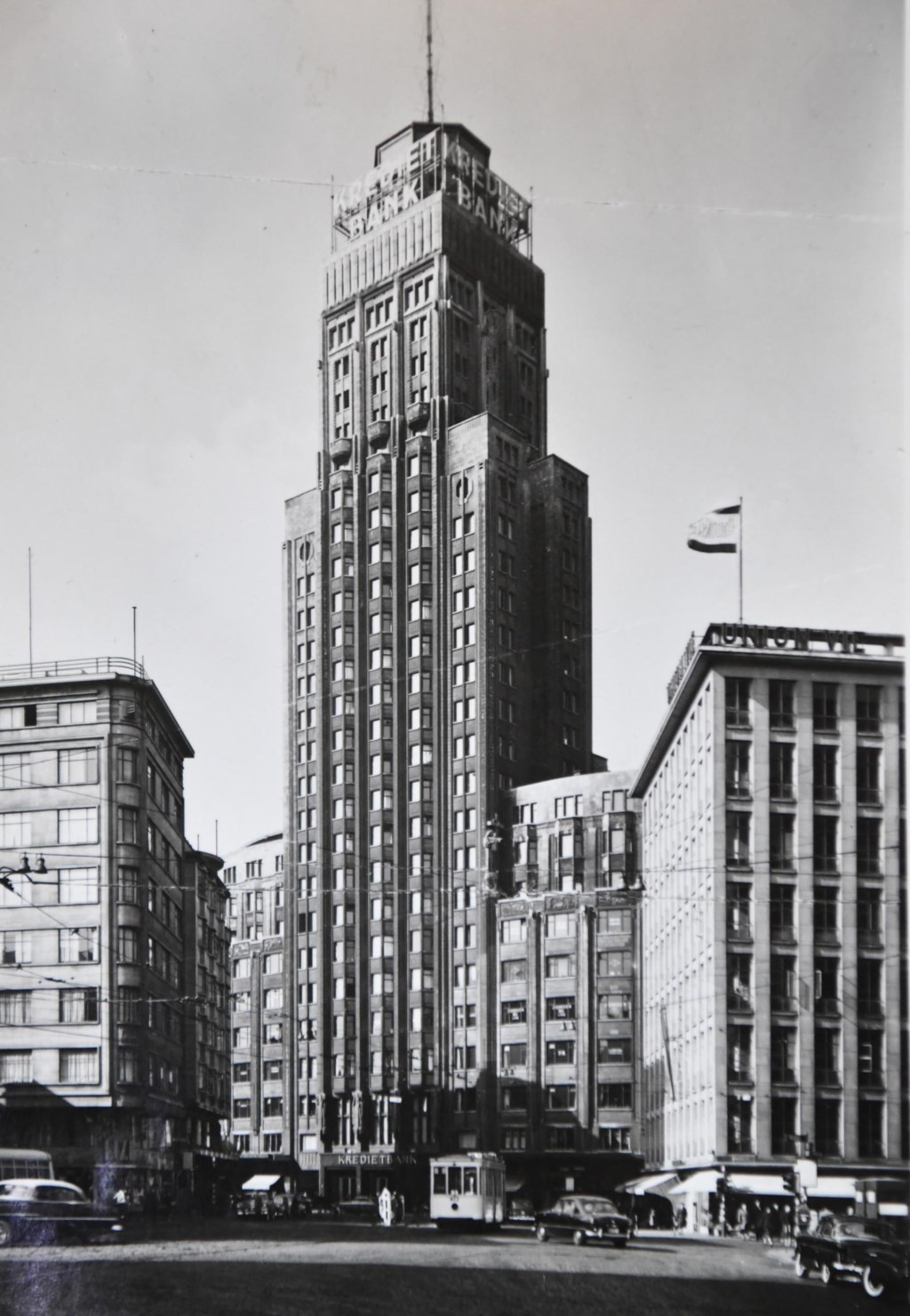 Het lijdt geen twijfel dat Huts en zijn architect hiermee een nieuwe stempel, hún stempel willen drukken op de Antwerpse skyline. De spits van de ‘serre’ steekt de toren van de kathedraal naar de kroon. De stralende ‘diamant’, die de toren overdondert, zal zowel de Groenplaats als de Meir domineren, en zal ‘s nachts wellicht tot in de Seefhoek zichtbaar zijn.