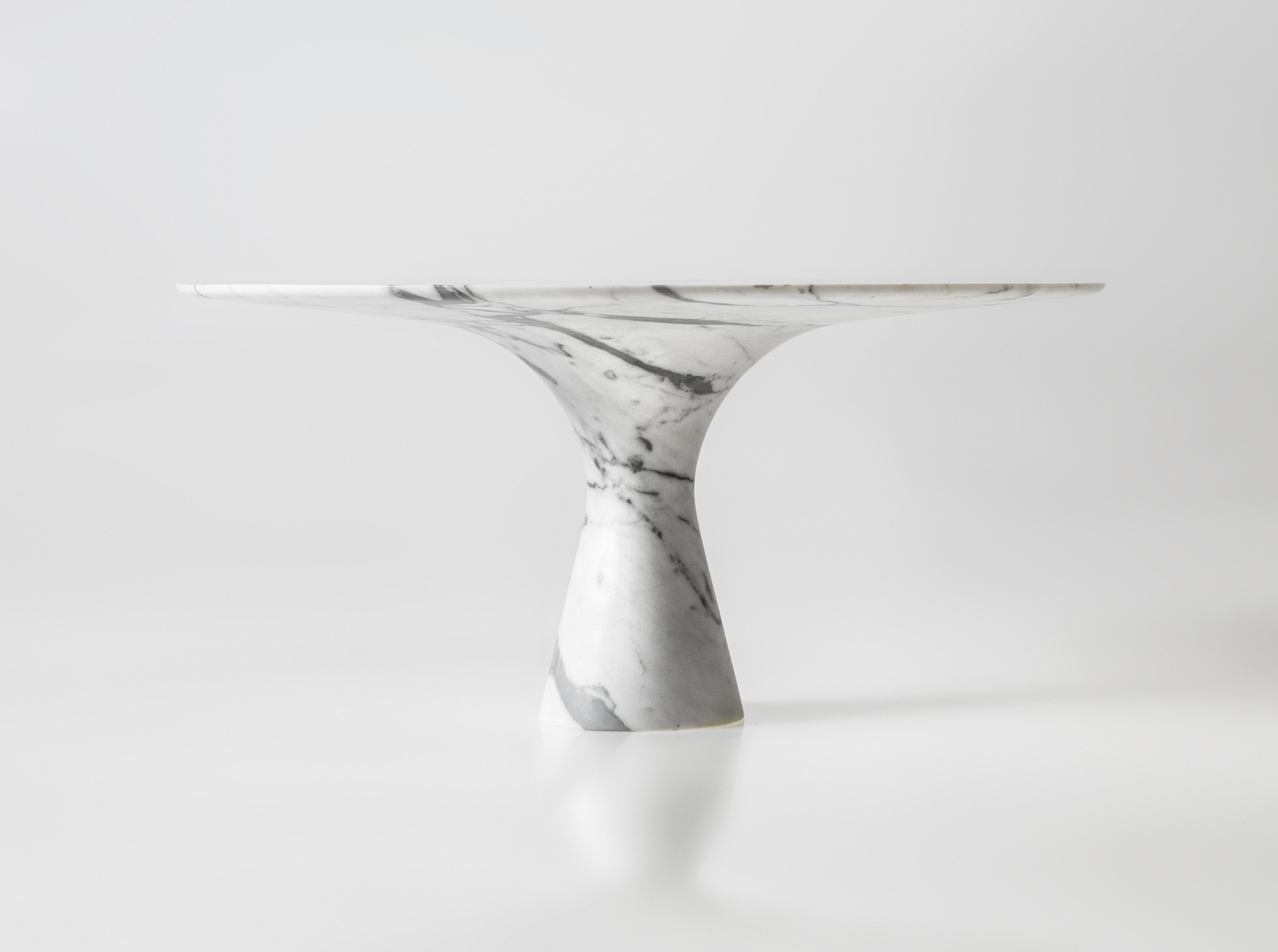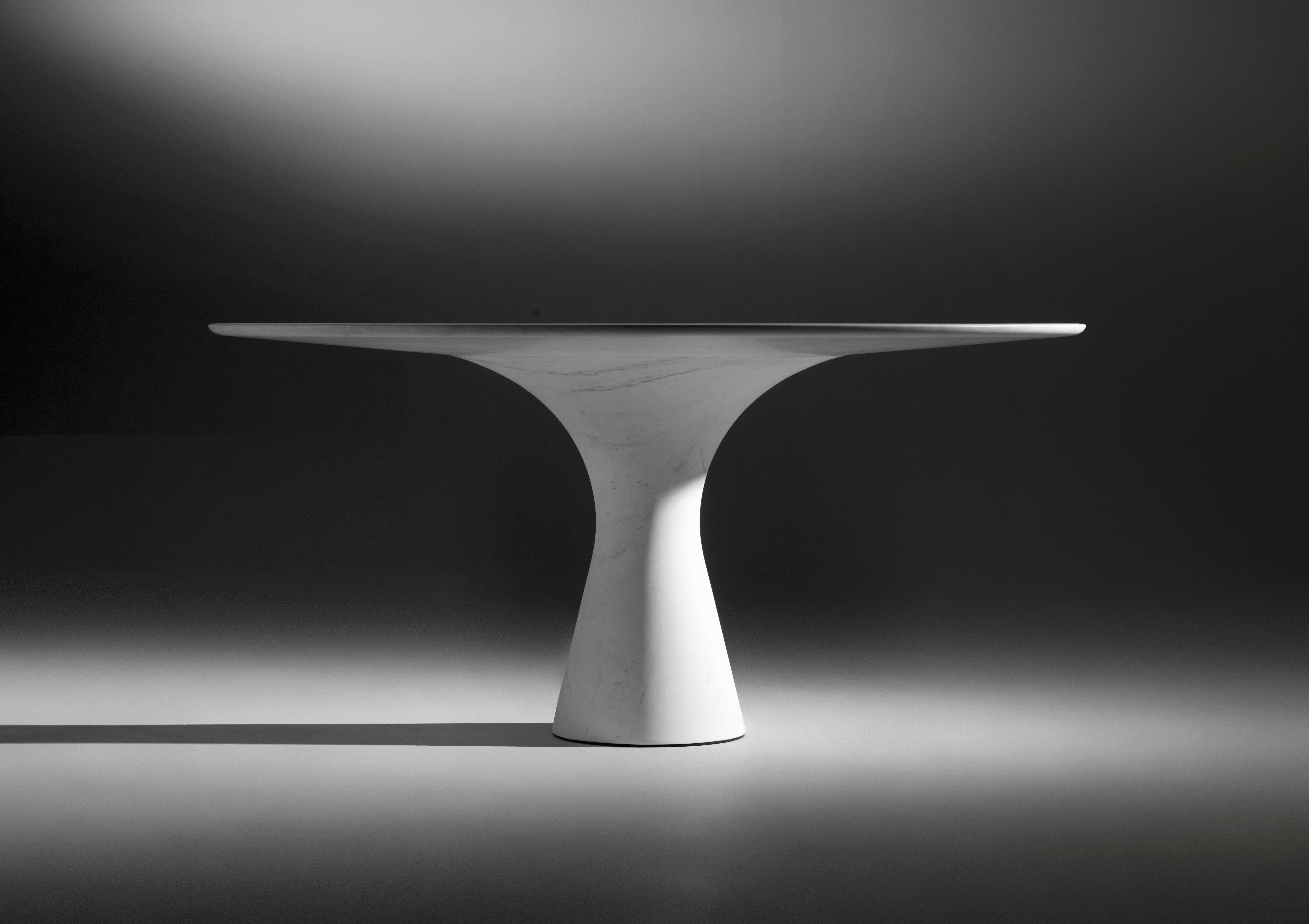 Het tafelontwerp Angelo M is de essentie van een ronde of ovale tafel in natuursteen met een sculpturale vorm, robuust materiaal, elegante belijning en verfijnde afwerking. De twee elementen, voet en blad, vormen samen één geheel. De onderzijde is één vloeiende curve vanaf de voet tot de tafelbladrand. Uitgevoerd in harde natuursteen geschikt voor buitengebruik is dit ontwerp ook een ideale tuintafel. Angelo M wordt verdeeld via exclusieve designwinkels in binnen- en buitenland.