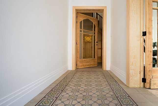De oude, karaktervolle tegelvloer in de inkomhal zet meteen de toon. Heel wat authentieke elementen kregen een nieuw leven in deze woning. Ook de originele houten deuren en het parket werden afgeschuurd en opgefrist met een likje verf. De combinatie met de nieuwe kwaliteitsvolle, decoratieve elementen van Orac Decor®, zorgt voor een topresultaat. Zo geeft de hoge, strakke High Line plint in de inkomhal extra cachet aan de overgang tussen muur en vloer.