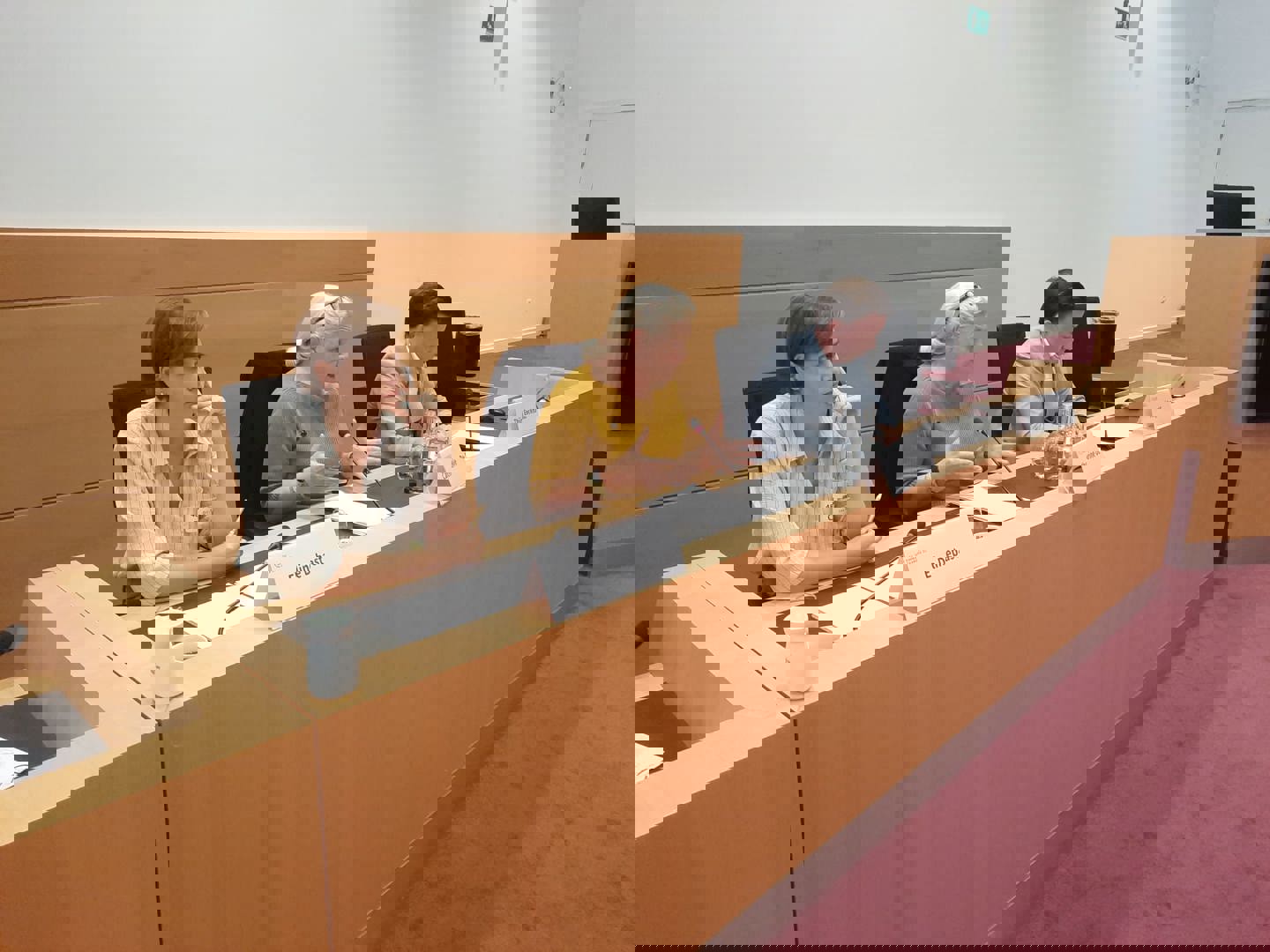 Catherine De Bie, secretaris van de Vlaamse Raad van de Orde van Architecten en Eline De Bast, juridisch adviseur bij Netwerk Architecten Vlaanderen namen tijdens de hoorzitting het woord namens de Nationale Raad van de Orde van Architecten.