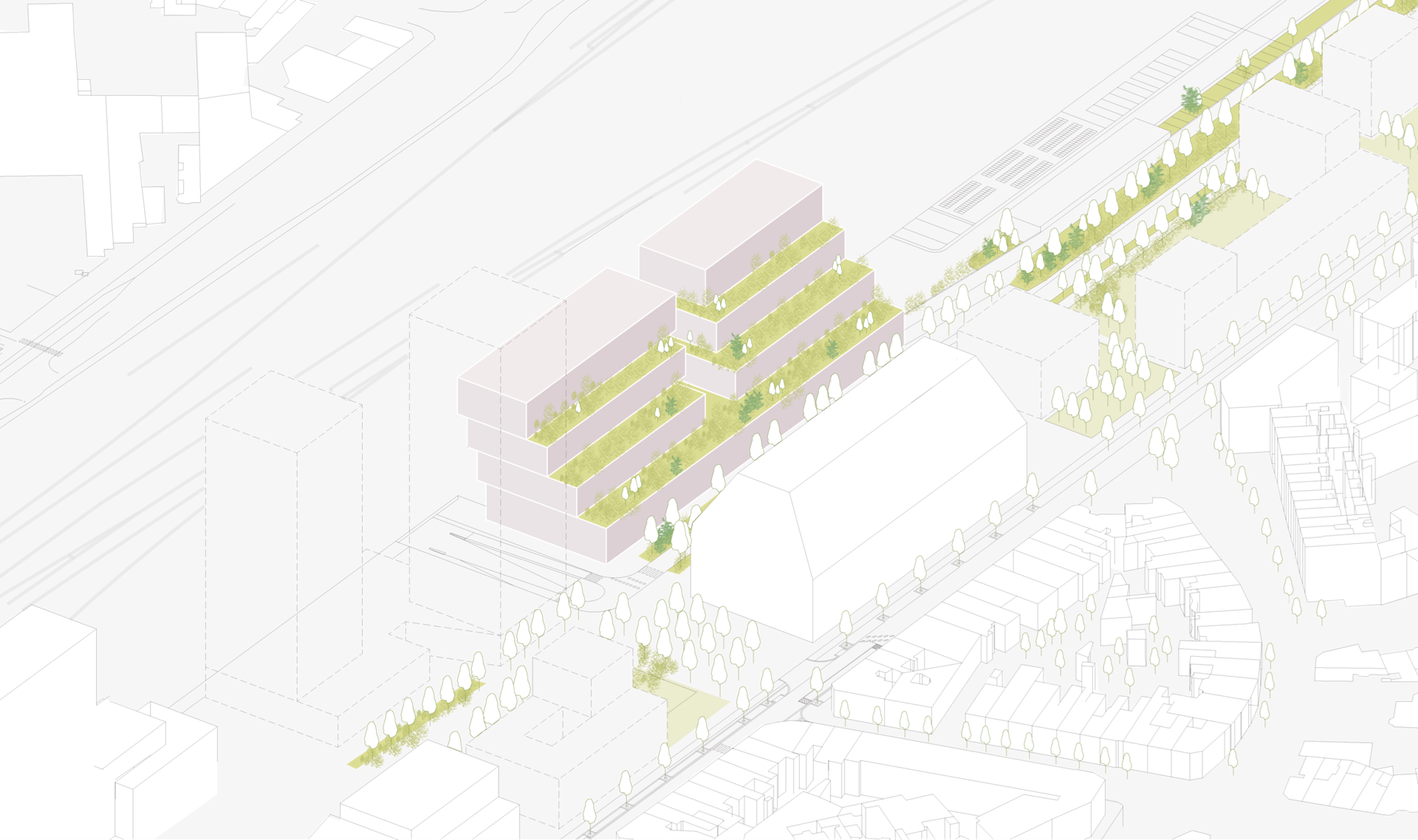 Binnenkort verrijst nabij het station van Gent-Sint-Pieters een nieuw dienstgebouw van spoorwegbeheerder Infrabel. ORG Permanent Modernity en ARCH & TECO ontwierpen samen met Daidalos Peutz het gebouw dat een logistiek centrum, kantoren en een state-of-the art seinhuis voor het treinverkeer in Oost-Vlaanderen zal huisvesten. De daken van de terugspringende volumes worden ingericht als daktuinen wat zorgt voor een groen straatbeeld.