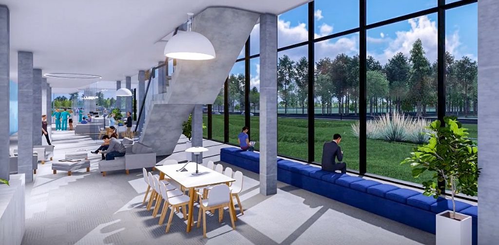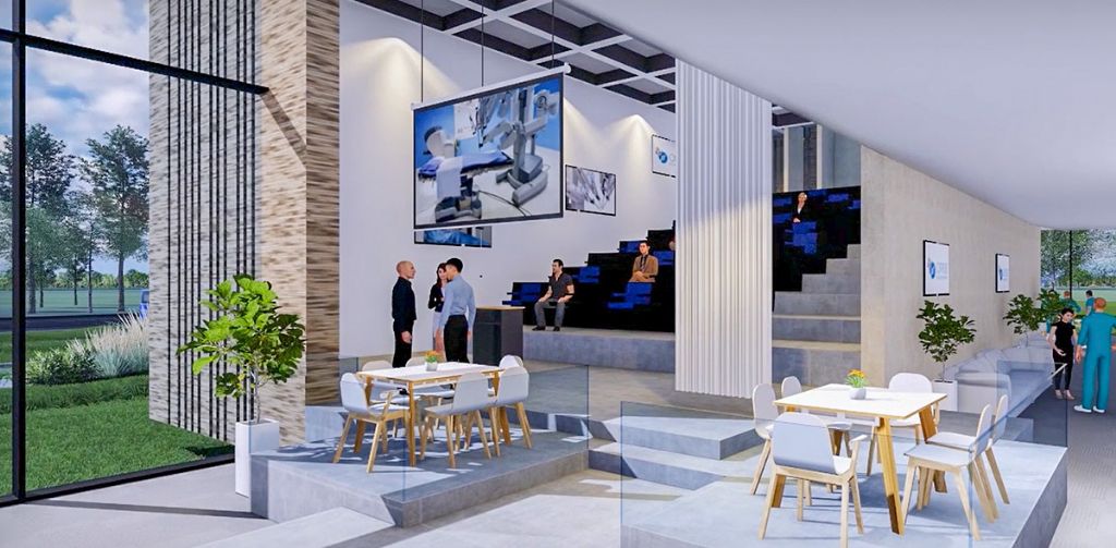 Het ontwerp verenigt een rechthoekig volume met 1 verdieping voor alle operatiezalen, met een L-vormig volume met 2 verdiepingen voor alle andere functies. De nieuwe campus bevat 4 clusters van 4 tot 6 operatiezalen, naast vergaderruimtes, een auditorium met 120 plaatsen, een restaurant, foyer en landschapskantoor.