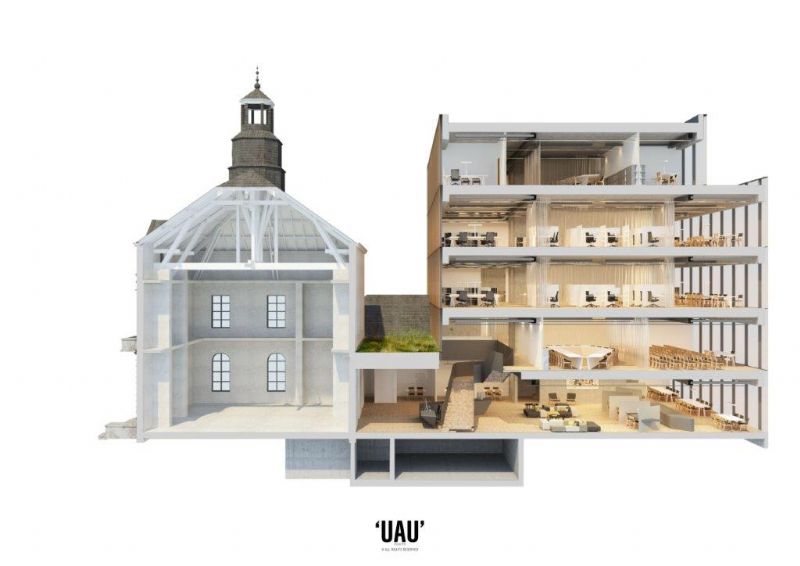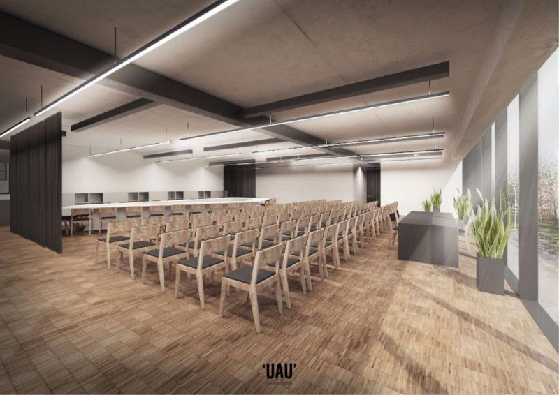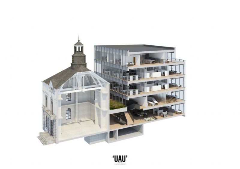 Leopoldsburg wilde graag een stukje van het oude gemeentehuis bewaren, gecombineerd met een nieuwbouw. “Waarom niet het hele gemeentehuis preserveren?” dachten ze bij UAU. Het bureau kroop achter de tekentafel en tekende een nieuwbouw conform de huidige normen die zich achter het oude gemeentehuis situeert. Dat blijft behouden en krijgt een nieuwe invulling.