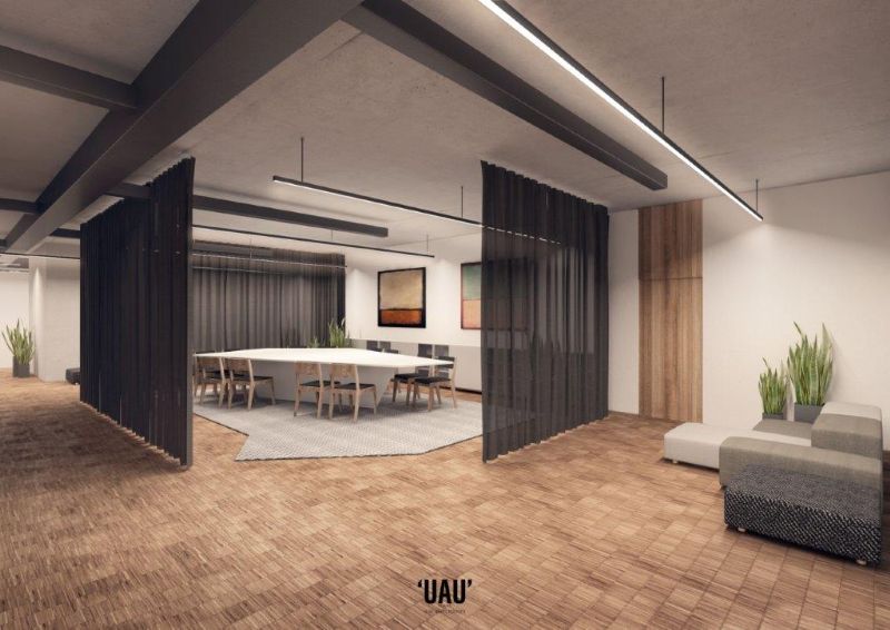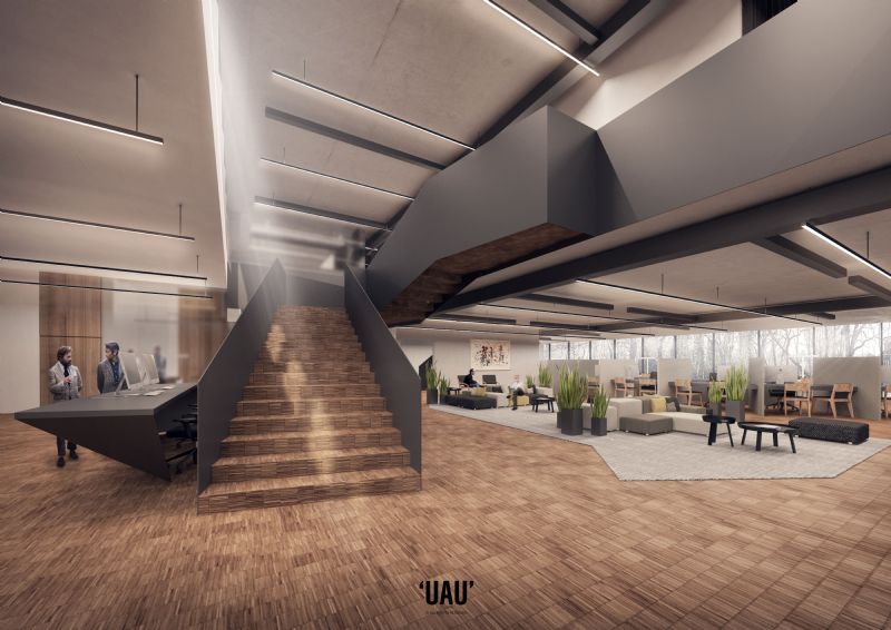 Voor het interieur opteert UAU voor een transparante, flexibele en multifunctionele indeling. De structuur bestaat uit twee kernen waardoor er geen kolommen nodig zijn. Dat biedt de nodige flexibiliteit. “Verschillende configuraties zijn mogelijk, gaande van een volledig open landschap tot verschillende kantoortjes. Zo bestaan de trouwzaal en de collegezaal afzonderlijk, maar je kan ze evengoed samenvoegen tot één geheel", aldus Vaes.