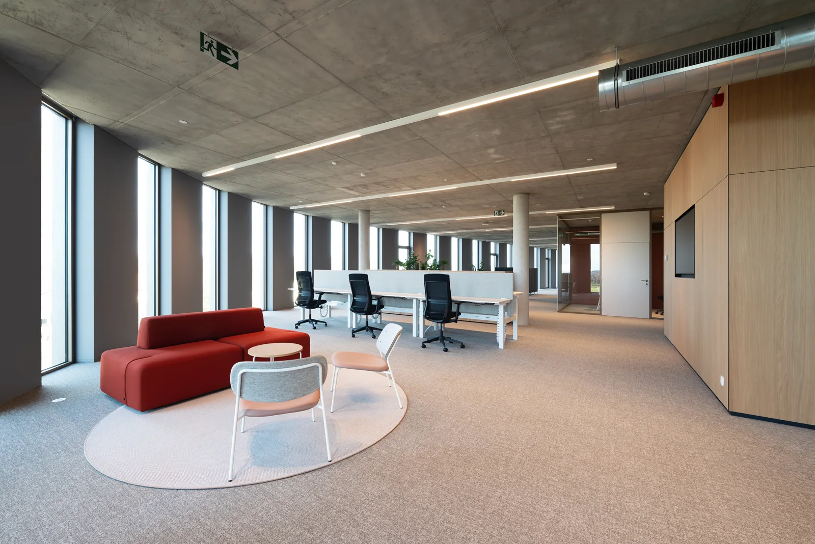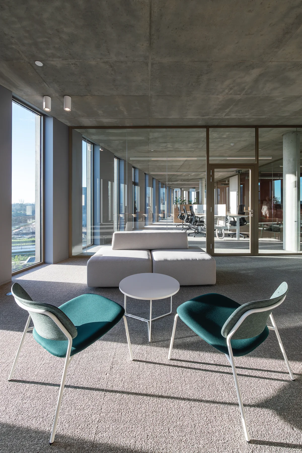 Veronique Hoflack, President van Unilin Panels, voegt toe: “Unilin Panels telt ondertussen1380 medewerkers, die zich allemaal elke dag 100% inzetten. We willen voor hen een fijne en stimulerende werkomgeving creëren. In het ontwerp van het nieuwe kantoorgebouw staan onze medewerkers centraal in onze gedachten. De kantoren moeten hen in de eerste plaats de ruimte bieden waar ze zich goed voelen. Waar ze kunnen innoveren, samenwerken en focus vinden. Kortom, het is een werkomgeving op maat van onze collega’s. Het interieur is trouwens geïnspireerd op een moodboard dat onze collega’s volledig zelf samenstelden.”