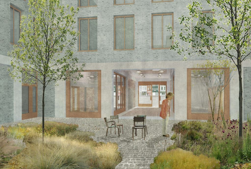 Bovenbouw Architectuur ontwierp i.s.m. Sergison Bates Architects en Bulk Architecten een grootstadsblok bestaande uit vijf grote gebouwen die doen waar de omgeving om vraagt. Ze geven een krachtig antwoord op de juiste schaal, zonder elkaar voor de voeten te lopen. Op het programma van Bovebouw stond een stedelijk palazzo van 54 wooneenheden en 10 commerciële ruimtes, als onderdeel van een grootstadsblok met een ondergrondse parking en binnenhof.