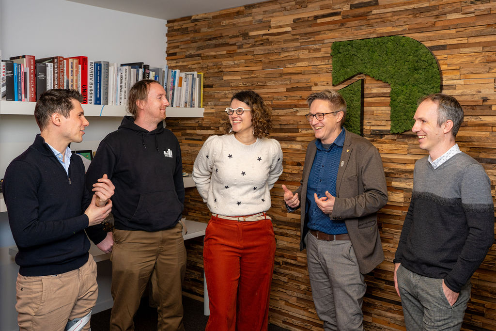 Geen goede akoestiek zonder deskundige uitvoering. Want een akoestisch ontwerp mag nog zo uitgekiend zijn: als het niet adequaat in de praktijk wordt gebracht, schiet het zijn doel voorbij. Dat is althans de ervaring van de vijf experts die we onlangs bij architectura uitnodigden voor een boeiende babbel over bouwakoestiek: Marjolein Vandersickel (akoestisch specialist bij Sweco), Tom Segers (senior ingenieur Geluid en Trillingen bij Bureau De Fonseca, by Studibo), Bart Van de Velde (bestuurder bij het akoestische studiebureau SonIQ), Arne Dijckmans (akoestisch ingenieur bij Buildwise) en Thomas Dox (accountmanager bij Merford).
