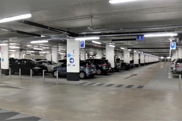 De nieuwe bezoekersparking omvat drie ondergrondse bouwlagen met in totaal 937 plaatsen en de spoedparking van 63 plaatsen. Hierdoor wordt aan ingang West, in combinatie met parking Tabor, een totale capaciteit van 2.500 parkeerplaatsen gerealiseerd, alsook een kiss-and-ride zone, een ambulancehal en een spoedplein met daglicht, voorzien via grote gevelopeningen en een twaalftal daklichten naar het bovengrondse plein.