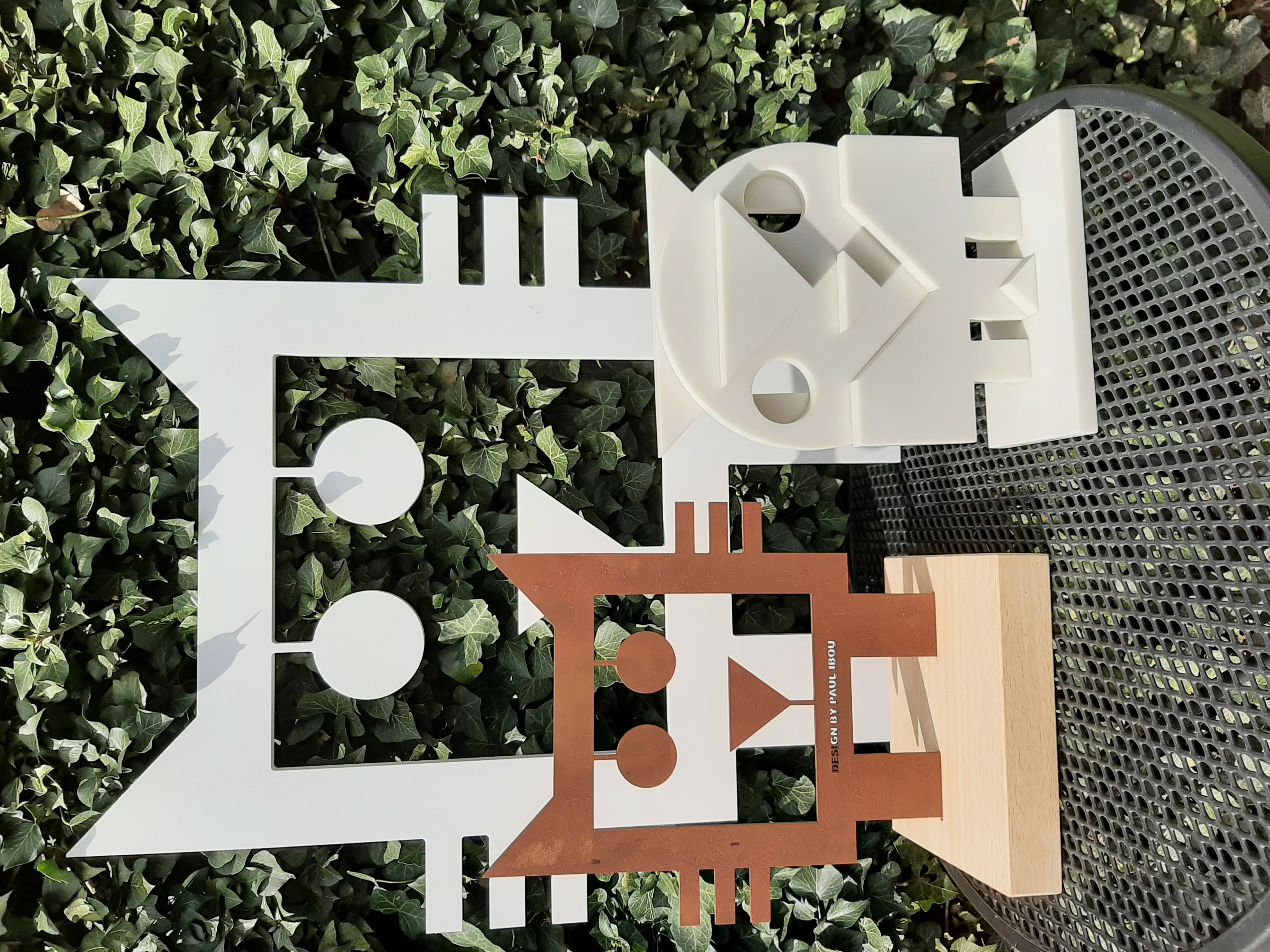 Pikatso: “Momenteel verwerken wij, samen met onze partners, PMMA (plexiglas), Corian (Solid Surfaces), hout, cortenstaal en ander materialen. Afhankelijk van de gebruikte grondstof worden deze bewerkt met een CNC gestuurde laser, waterjet, freesmachines … Meestal bestaan onze items uit verschillende onderdelen, vervaardigd door verschillende machines. De productie gebeurt volledig in België, in onze werkplaats of in de werkplaatsen van onze netwerk partners, waarmee we een vertrouwensrelatie hebben in functie van kwaliteit en flexibiliteit.