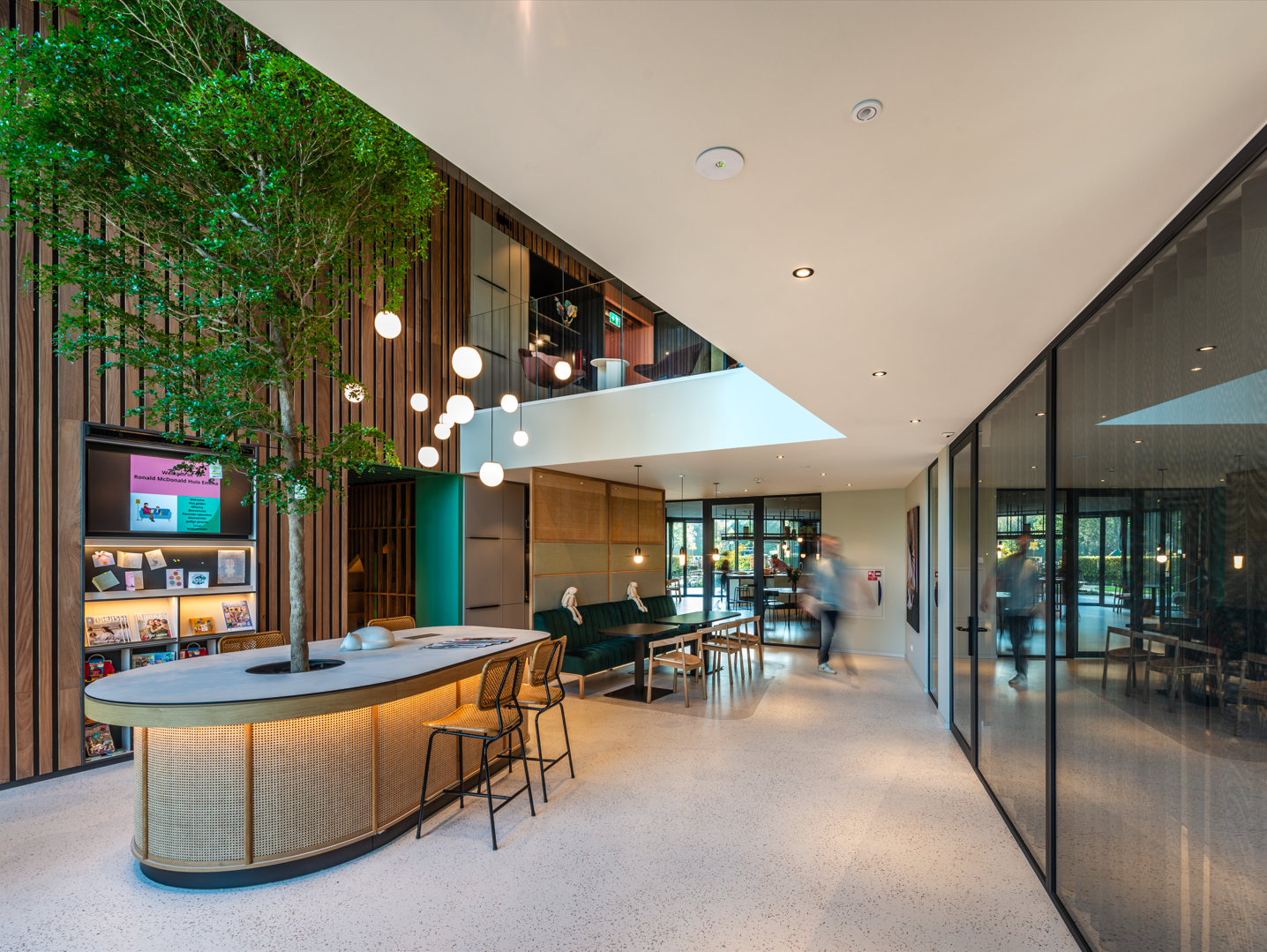 Het Ronald McDonald Huis Emma in Amsterdam, ontworpen door HEYLIGERS architects, biedt een warm onderkomen aan families van zieke kinderen vlak naast het Amsterdam UMC. Het ontwerpteam koos voor Forestlines® van Paulussen Houthandel om een esthetische houten schil te realiseren die zonder chemische brandvertragers voldoet aan de strengste brandveiligheidseisen. Dit project richt zich op het combineren van natuurlijke materialen met de noodzakelijke veiligheidsnormen binnen een zorgomgeving.