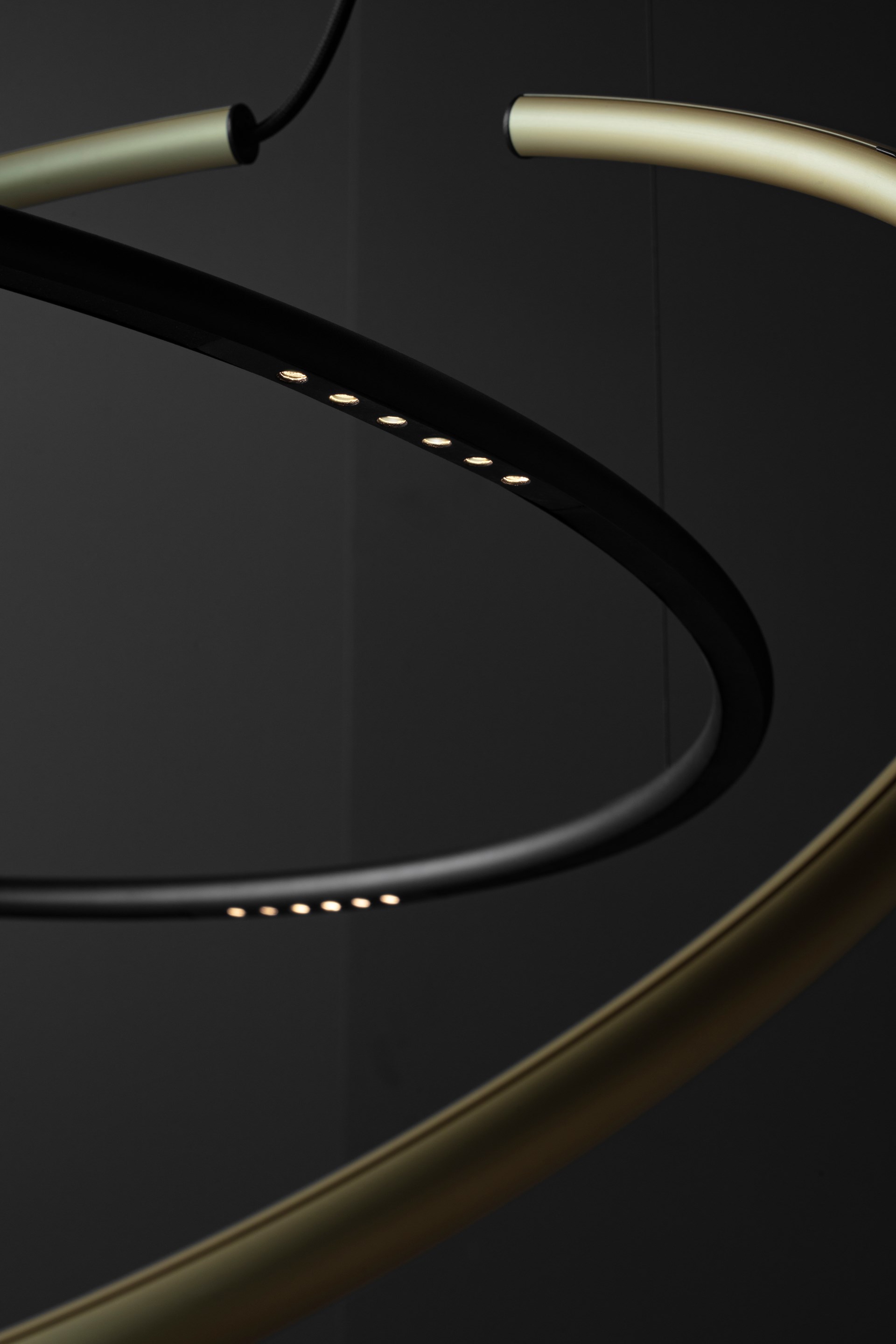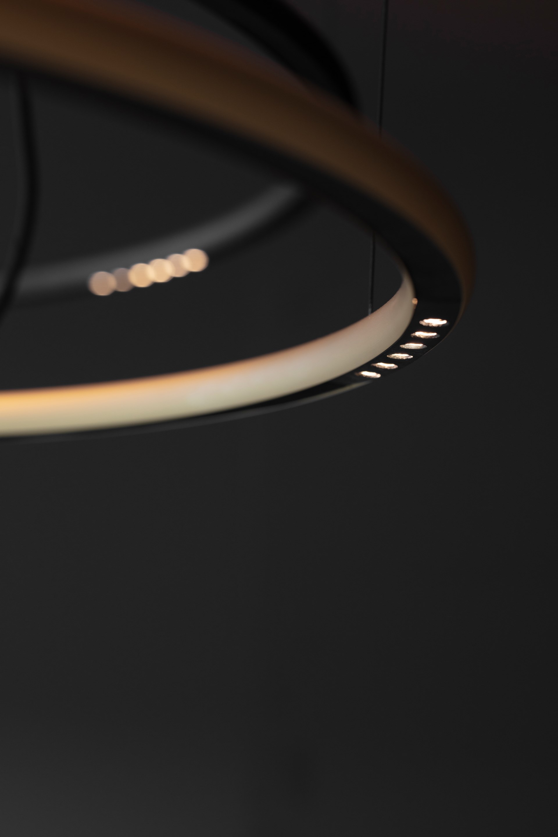 Superloop Slim verbergt een speciaal ontworpen ledstrook met een gezandstraalde diffusor die het licht gelijkmatig verspreidt. Kies voor een eenvoudige opstelling met een enkele armatuur of combineer verschillende maten, kleuren en uitvoeringen voor een uitdagend geheel. Beschikbaar in diameter 700, 900, 1200 en 1700mm en in zwart, flemish bronze, flemish gold, goudkleur en wit.