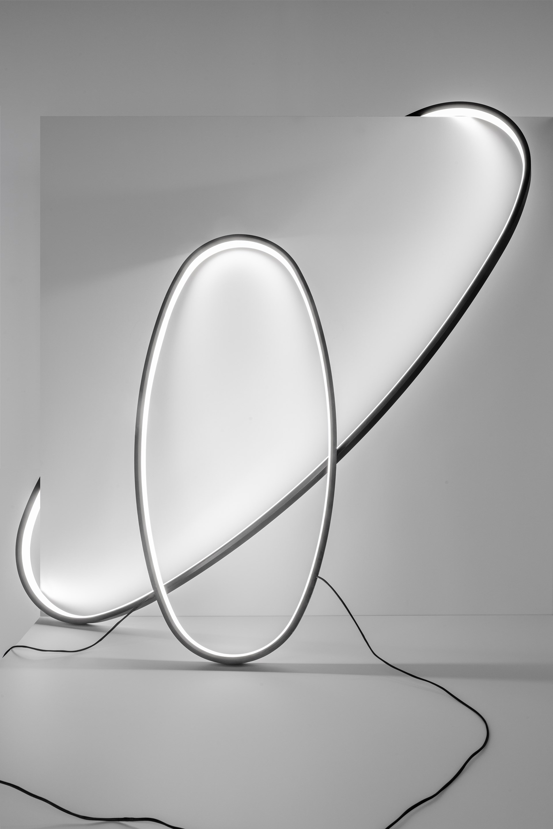 Dit ontwerp bewijst het kunnen van een menselijk brein. De Lass-Oh! R legt de standaard armatuur aan banden en kroont zich als koning van een onvolmaakt, maar perfect ontwerp. De onderbreking van de cirkel is wat Lass-Oh! R kenmerkt. De geometrische vorm is niet langer volledig, hoewel hij doet alsof hij dat wel is. Het pronkt met een slank, cilindrische vorm in combinatie met de miniatuur ledclusters die naadloos verwerkt zijn. Lass-Oh! R glijdt als een slang door een ruimte met een diameter van 620 mm of 920 mm in zwart of goudkleur.