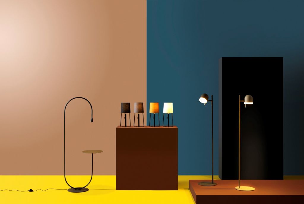 Uturn is een handige, speelse lamp. Ze maakt een diepe buiging en heeft een presenteerblaadje. Deze lamp is beschikbaar in Charcoal (zwart) of Biscotti (goudkleurig). Pom is een stalamp met een slank design, een stevige voet en een kantelbare kop. Deze lamp is net zoals de Uturn te verkrijgen in Charcoal of Bisotti.