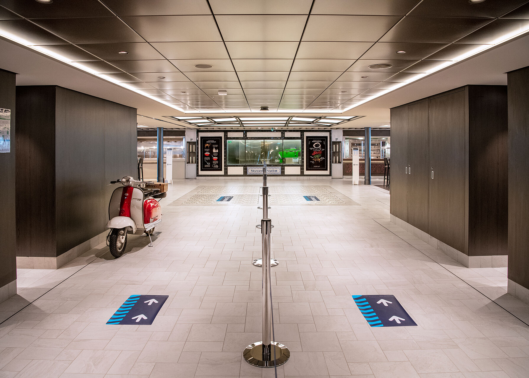 Ook in openbare ruimtes zoals trappenhuizen, lifthallen en galerijen laten Pfleiderer-houtmaterialen zien waar ze van gemaakt zijn. Een bijzonder voordeel hier: de ontwerpconcepten van de binneninrichting kunnen waar nodig consequent worden gerealiseerd met IMO-goedgekeurde materiaaloplossingen.