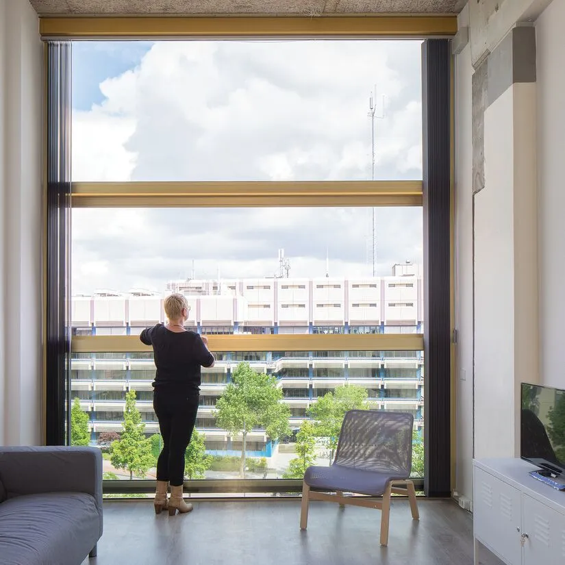 Gevelspecialist Wijmoco voorzag de raamsystemen van een speciale motor inclusief vingerveilige besturing én een lekdorpel om inregenen op de kierstand te voorkomen. “Vervolgens zijn ze bij Reynaers in België getest op wind- en waterdichtheid”, vertelt Richard Wijkamp van Wijmoco Geveltechniek, die behalve met technische uitdagingen ook te maken kreeg met een spannende planning. “In slechts vier maanden moest de gevel dicht zijn en voorzien van ruim 543 verticaal schuivende ramen en meer dan honderd horizontale openende raampartijen. Door een strakke planning, intensieve samenwerking en afstemming met de aannemer Stam + De Koning en wekelijkse leveringen is dat gelukt.” Bovendien kon de gevelbouwer op de bouwplaats het proces nog wat versnellen. “Met een extra zware glaszuiger werden de puien in de gevel gezet. Door deze meteen vast te schroeven en het middelste raam naar beneden te laten zakken was er direct een valbeveiliging en hoefden er geen steigers gebouwd te worden.”