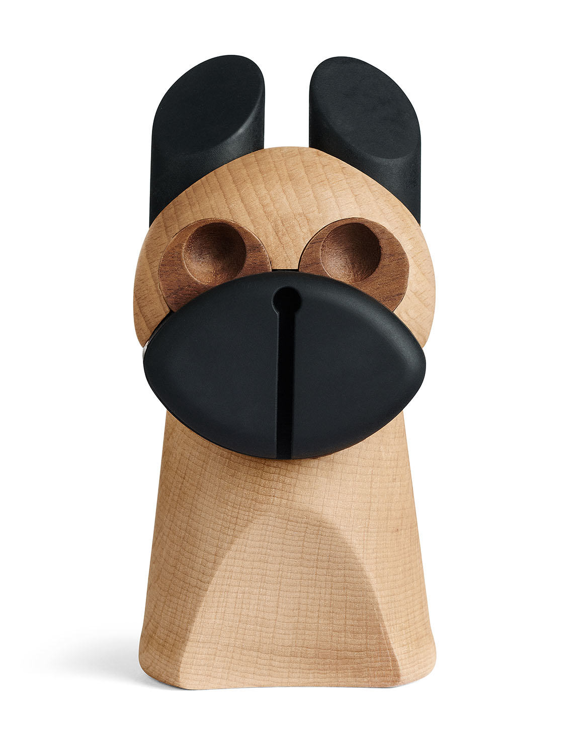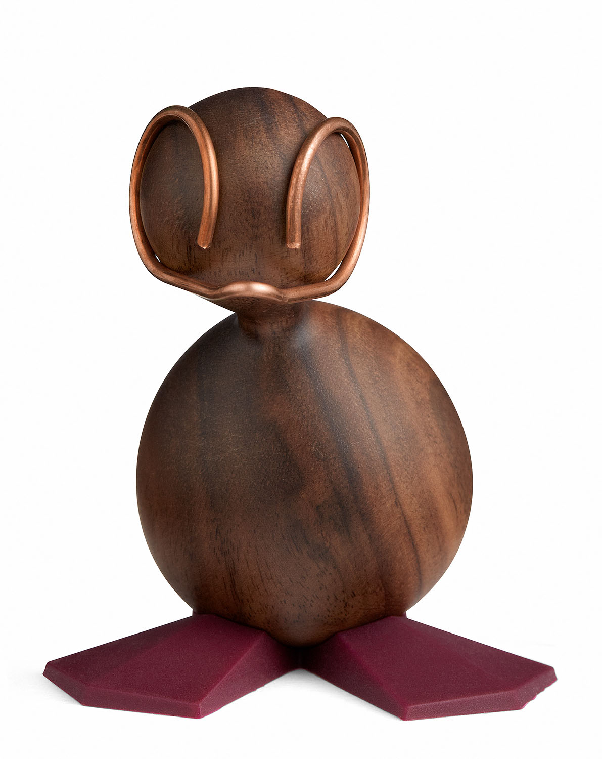 Ieder figuur uit de Fairy Tales collectie is bijzonder. Zo kan Het Lelijke Eendje uit het gelijknamige sprookje verscheidene poses en ‘gezichtsuitdrukkingen’ aannemen. Doordat het houten lijfje, de bek uit koperdraad en de siliconen voetjes los van elkaar staan, kan de sprookjesfiguur in allerlei posities gedraaid worden. Ook de hond ‘met ogen zo groot als theekopjes’ uit het sprookje De Tondeldoos kan diverse houdingen aannemen door het hoofdje steeds een andere kant op te bewegen. De figuur komt daarenboven met ogen in drie materialen: notenhout, messing en staal. De Nachtegaal is behalve een elegant staaltje Deens design uit hout, staal en siliconen dan weer een fluit.