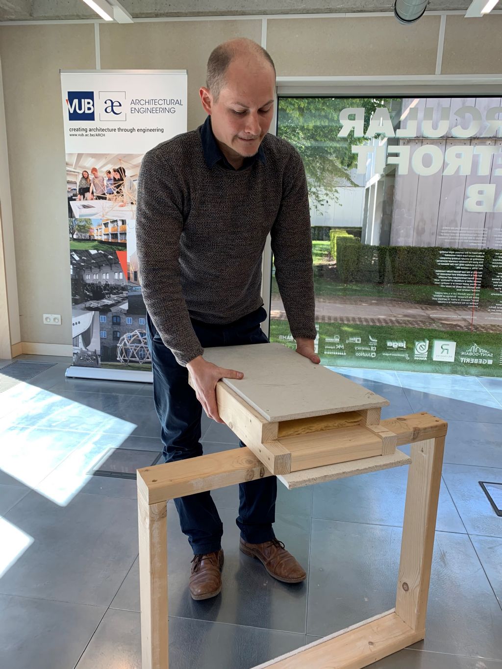 Prof. De Temmerman benadrukte voor de aanwezige pers ook nog eens dat een omslag naar circulair bouwen nu echt niet langer op zich mag laten wachten. “De bouwsector is verantwoordelijk voor 40 procent van al het afval wereldwijd. Energierenovaties zijn vandaag goed ingeburgerd, maar men mag dus niet vergeten dat ook de materiaalimpact van de bouwsector enorm is. Het is ook verkeerd om te denken dat het louter gebruiken van circulaire materialen en producten per definitie een circulair gebouw oplevert. Als je die materialen en producten op een verkeerde manier gaat plaatsen, met bijvoorbeeld onomkeerbare verbindingen, sta je eigenlijk nergens. Dan ben je nog beter af met traditionele materialen die je omkeerbaar toepast.”
