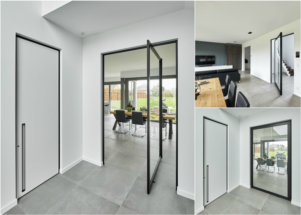 Taatsdeuren draaien om een denkbeeldige verticale as. Met hun immense formaat geven ze de kamer een zekere grandeur. Enige nadeel was dat het scharniersysteem in de vloer moest worden ingebouwd. De Stealth Pivot – het discrete 360° pivotscharnier van ANYWAYdoors – maakt hier een eind aan.