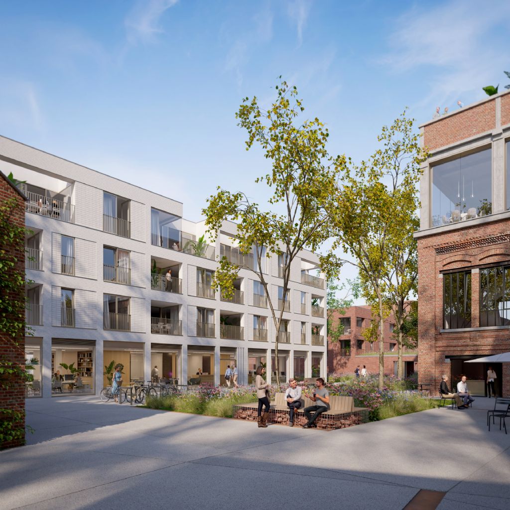 Projectontwikkelaar Revive heeft zonet de plannen bekendgemaakt voor de tweede fase van de herontwikkeling van de Saffre-Frères site in Oudenaarde. De toekomstige woon- en werkwijk langs de Blekerijstraat krijgt er nog 58 appartementen, 26 woningen, een woonzorgcentrum, kantoren en commerciële ruimtes bij. Net als bij de plannen voor de eerste fase - die nu in volle opbouw is - ligt de focus van de nieuwe wijk op groen en duurzaamheid. Het masterplan van de site is uitgetekend door Architecten Achtergael, die ook de eengezinswoningen ontwerpt. Henri, Victor en het woonzorgcentrum zijn dan weer van de hand van Archipl Architecten. Het Oudenaardse bureau DNA Architecten staat in voor het ontwerp van Stoom en de landschapsarchitecten van OMGEVING geven vorm aan alle buitenruimtes.