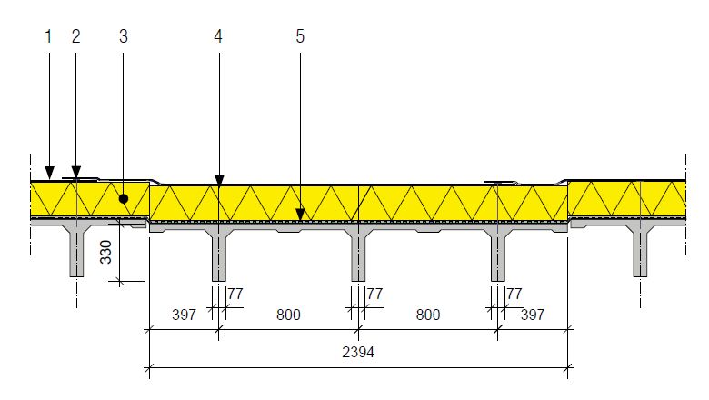 TT-dakelementen uit voorgespannen beton zijn opgebouwd uit balken (ook wel ‘ribben’ genoemd) en een dunne plaatstructuur (ook wel ‘druktafel’ genoemd). Deze elementen vertonen vóór hun plaatsing een zekere opbuiging en de toleranties die erop van toepassing zijn (zie PTV 200) kunnen aanleiding geven tot hoogteverschillen van meer dan een centimeter tussen de naast elkaar geplaatste elementen. Bijgevolg kunnen de oneffenheden ter hoogte van de langsvoegen groter zijn dan toegelaten is voor de plaatsing van de thermische isolatie en de verkleving van de dampschermen of afdichtingen (zie tabel 10 van de TV 215). Bovendien dient men ter plaatse van deze langsvoegen rekening te houden met de differentiële vervormingen van de TT-elementen (zie § 8.4.2 van de TV 223 voor mogelijkheden om de elementen zonder vervormingen te verbinden). Dit alles maakt dat deze elementen zonder druklaag in principe ongeschikt zijn om als dakvloer voor platte daken gebruikt te worden.
