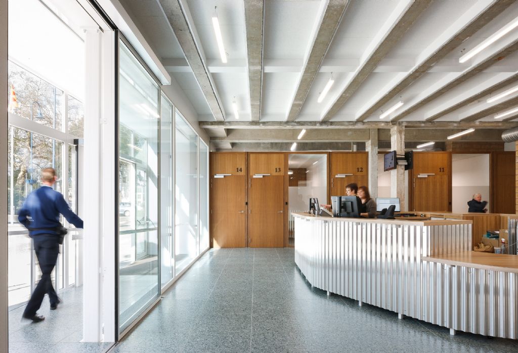 Eronder zit de vernuftige inbreidingsstrategie die het administratief centrum transformeert tot een duurzaam dienstenhuis. De frontoffice op het gelijkvloers vormt het hart van het gebouw. De burger vindt er alle mogelijke diensten in een genereuze overdekte patio, aansluitend bij de vernieuwde organisatorische structuur. De tussenliggende verdiepingen werden volledig vernieuwd tot een flexibel werkconcept. Van flexplek en overlegruimte tot een sporadisch, klassiek directiekantoor. Een diversiteit aan werkplekken wordt aangeboden aan de verschillende diensten die hierdoor nauwer kunnen samenwerken.