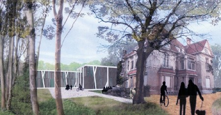 De villa, waar momenteel ook een deel van de academie in gevestigd is, maakt deel uit van een beschermd stadsgezicht. Uit de verschillende deelnemers van de Open Oproep koos Lokeren voor het ontwerp van Plusoffice. Zij kozen voor een totaal nieuwe, van het bestaande verschillende, uitbreiding, waarmee ze duidelijk de eigenheid van de villa wilden behouden. Hun ontwerp vertrekt van een ‘paviljoen’ typologie in het sterk bebost gebied achter de villa. Deze minimale structuur van vloer- en dakplaat op kolommen laat een optimaal contact met het bospark toe. Er wordt gebruik gemaakt van materialen die het uitzicht van de villa niet of nauwelijks beïnvloeden. Bij de renovatiewerken worden het dak, het buitenschrijnwerk en de gevels aangepakt.