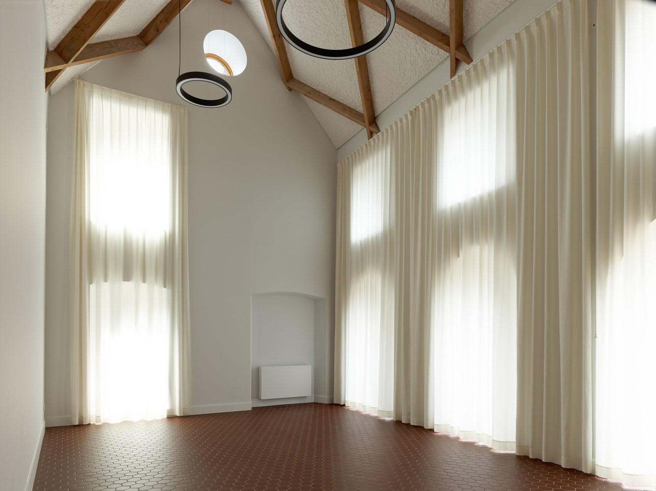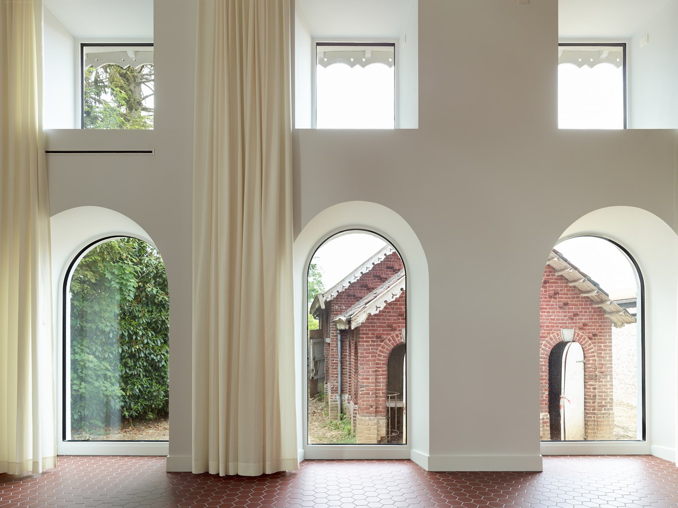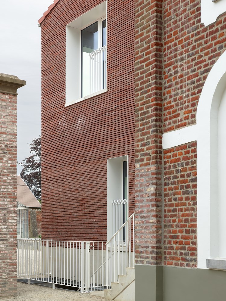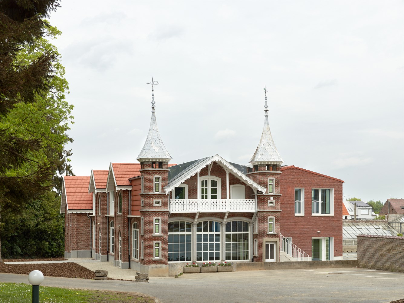 De ingreep van PLUSOFFICE herwaardeert het oorspronkelijke hoofdvolume, vernieuwt de dakvorm en plaatst een "tweeling zuster" als uitbreiding naast het oorspronkelijke gebouw. De nieuwe dakvorm sluit naadloos aan op het historische gebouw en is gemaakt van kleidakpannen in harmonie met de bestaande bakstenen gevel. De nieuwe aanbouw neemt dit materiaalgebruik over en breidt het uit met eigentijdse raamopeningen. De ballustrades voor deze ramen zijn figuratief gedetailleerd, geïnspireerd op de fijne houten uitsparingen van het hoofdgebouw.