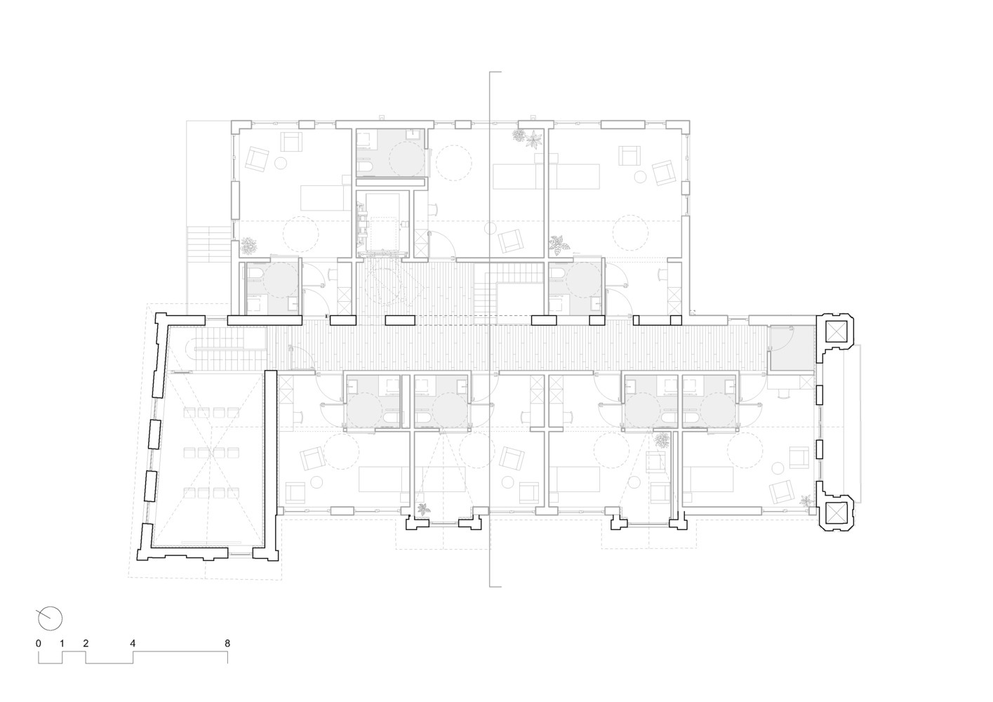 Als onderdeel van dit masterplan renoveerde PLUSOFFICE "Gaudium". Dit voormalige koetshuis werd gebruikt als novicenresidentie. De historische gevels zijn gerestaureerd, de bijgebouwen vervangen en het ontwerp is gebaseerd op een bijna energieneutraal technologieconcept. De heringerichte residentie zal plaats bieden aan negen bewoners, die elk een volledig uitgeruste verzorgingskamer hebben en enkele speciale woonruimtes delen.