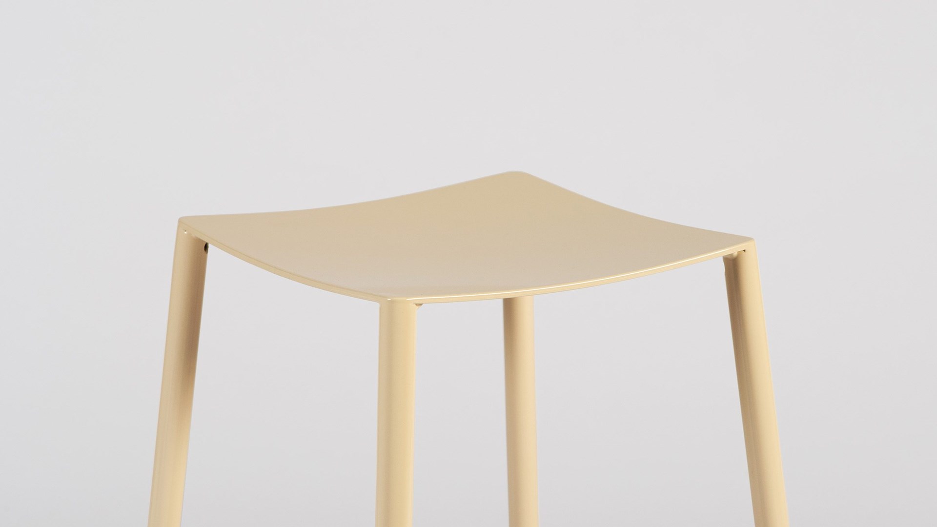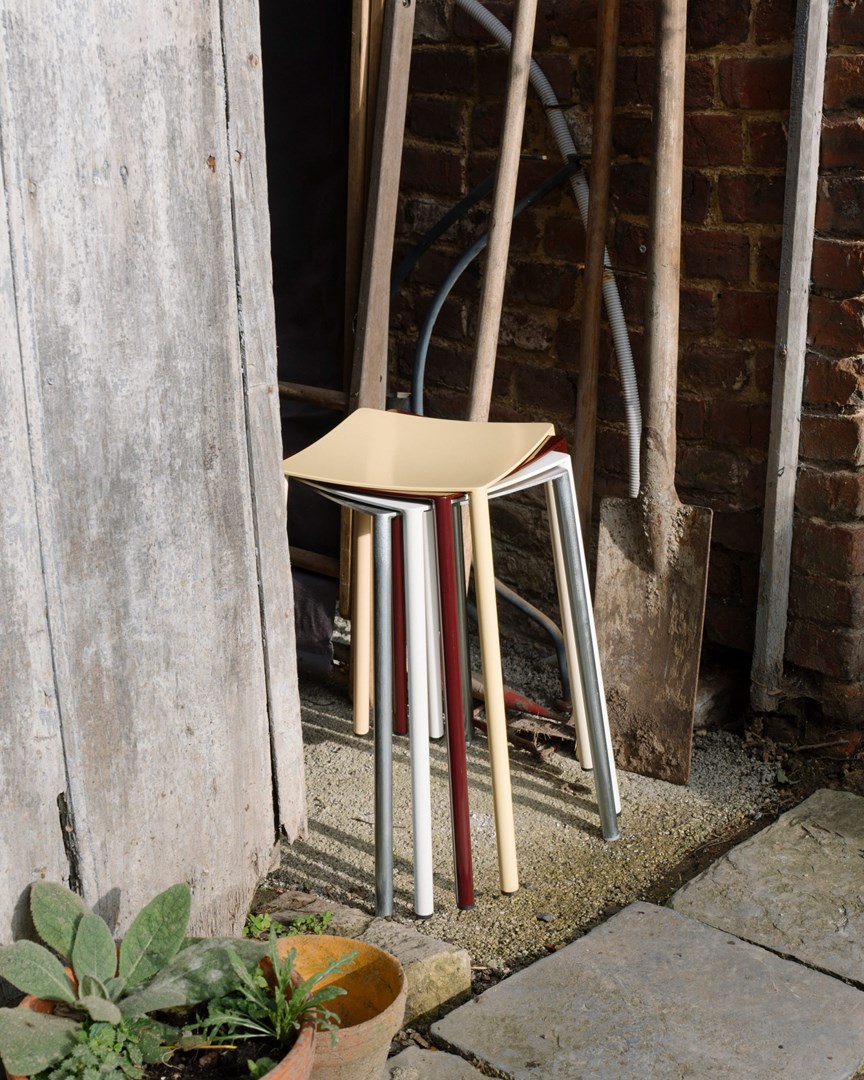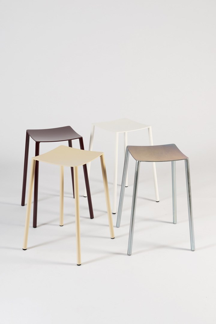 Vier dunne stalen buizen en een geperste staalplaat: meer had de Belgische ontwerpstudio Vormen niet nodig om zijn nieuwste kruk de Living Objects stool ineen te lassen. Zoals het de studio betaamt, is deze kruk niet enkel poëtisch in al haar eenvoud, maar ook ergonomisch en praktisch. De lichte kromming in het zitvlak verwijst naar de aanwezigheid van een zittende persoon en omschrijft Vormen als “een gevoel van poëtische uitstraling”.
