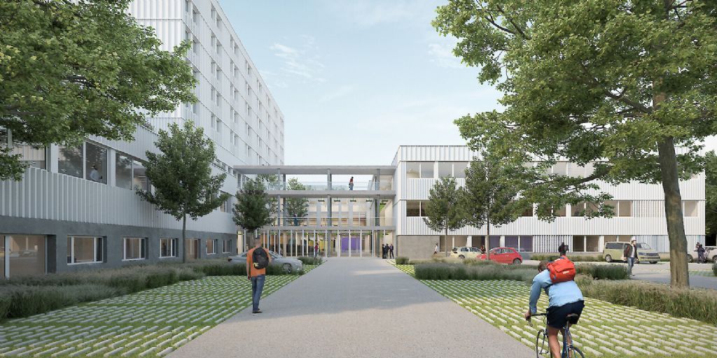 “De ligging van het campusgebouw vormt een van de vertrekpunten van het voorontwerp. De zuidelijke inplanting op de Brussels Health Campus is een troef. Van hieruit heb je unieke zichten op Brussel en omgeving. Het gebouw grenst aan de rand van de bossen. Het ontwerp zet maximaal in op belevingswaarde, zowel binnen als buiten", aldus Clara Van Geel – projectarchitect archipelago.
