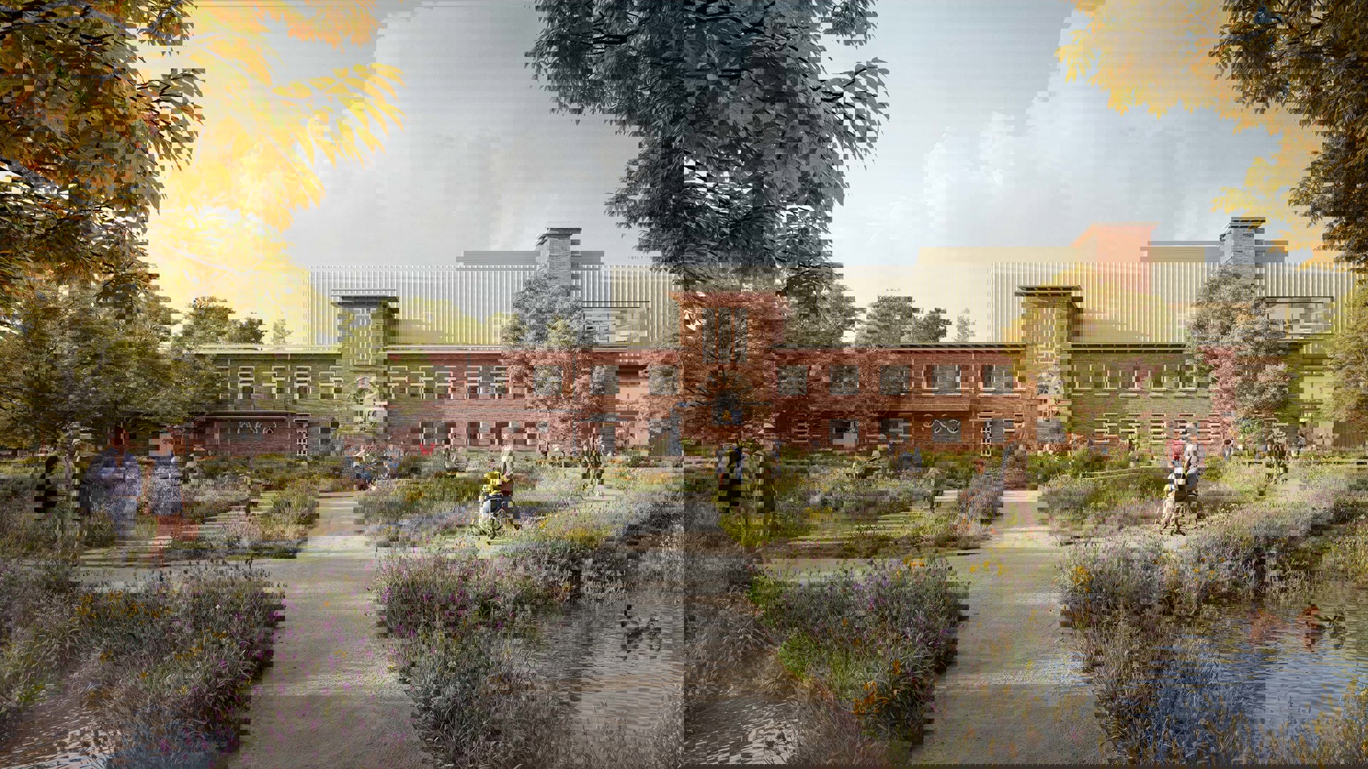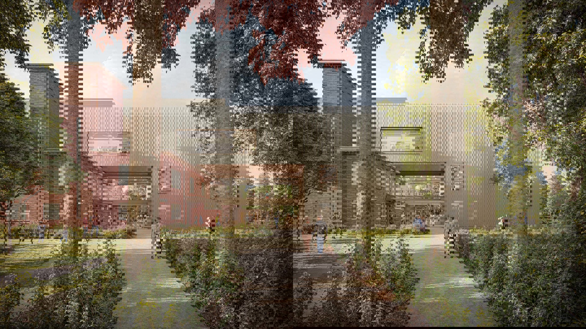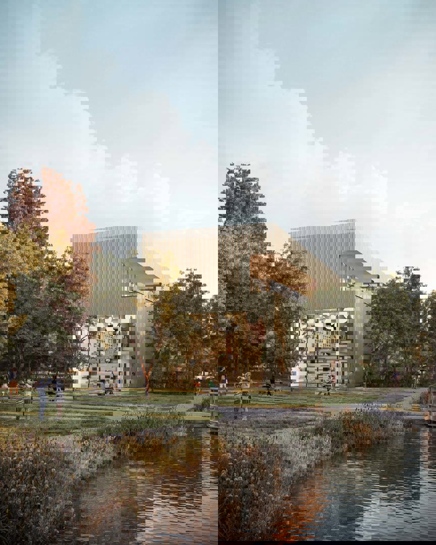 Daarnaast worden nieuwe waterpartijen en streekeigen beplanting aangelegd om regenwater te bufferen en de biodiversiteit te versterken. Speelplekken en buitenwerkplekken creëren een vanzelfsprekende link tussen binnen en buiten. Het geheel vormt een robuust en klimaatbestendig landschap dat ontmoeting en ontspanning stimuleert en bijdraagt aan de ecologische veerkracht van de site.