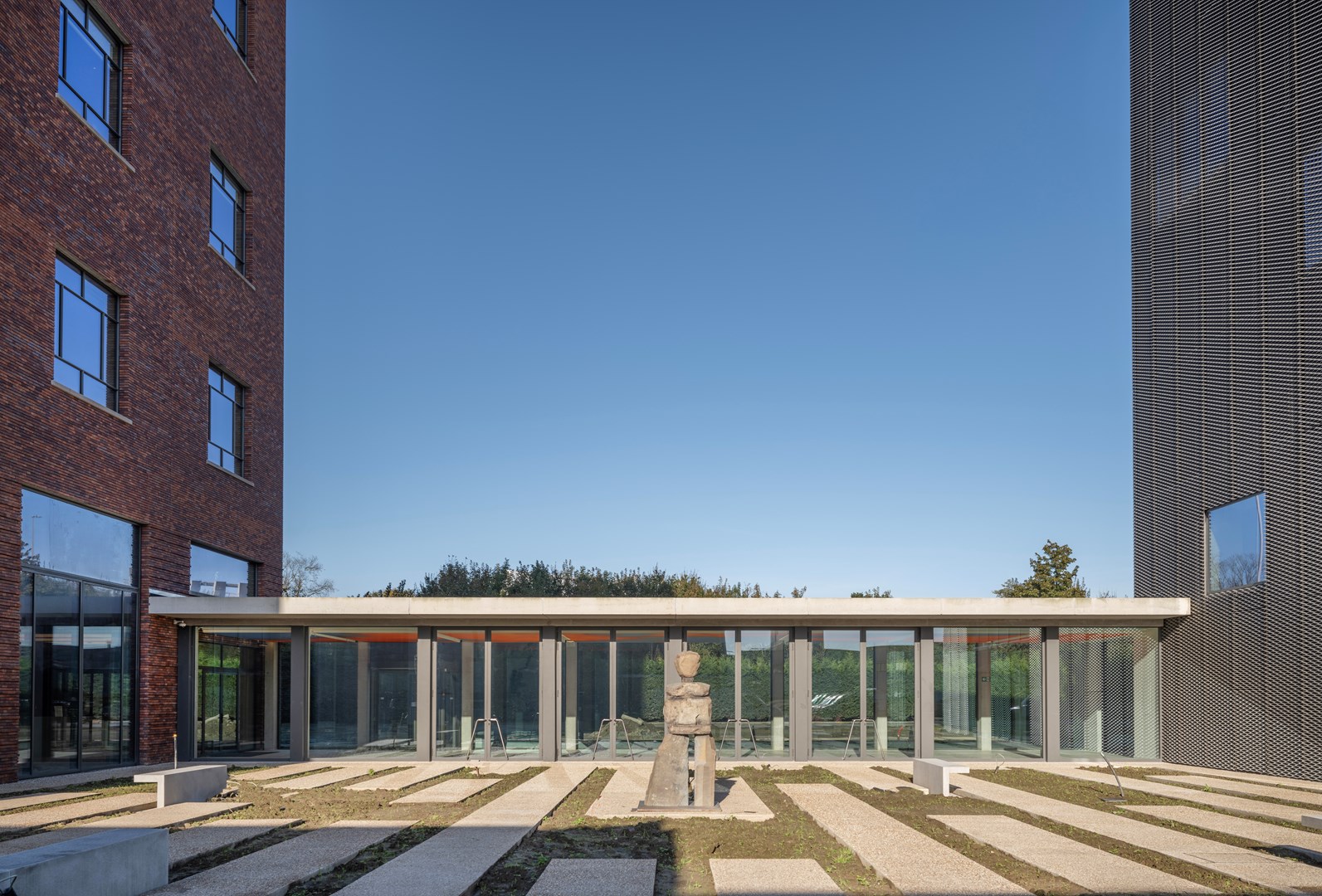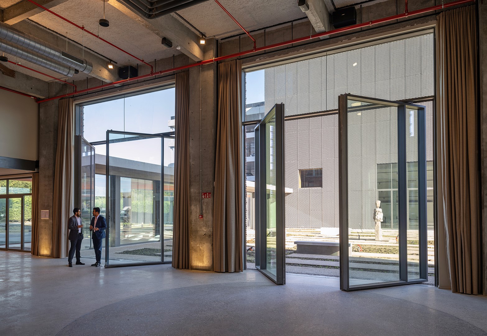 Een bijzondere uitdagingen binnen het project was het integreren van diverse functies zoals vergaderruimtes, een expozaal en een aula in de Polytoren. Om deze voorzieningen te realiseren zonder het oorspronkelijke volume van de toren teveel aan te tasten, werd een aparte galerij aangebouwd. Deze galerij is verbonden met het hoofdgebouw via een luifel die aan weerszijden beglaasd is. Peeters benadrukt: "Het creëren van een harmonie tussen deze nieuwe ruimtes en het bestaande gebouw vereiste creatieve oplossingen, waarbij het stalen systeem van Jansen de ideale keuze bleek door zijn robuuste uitstraling en functionele flexibiliteit."