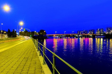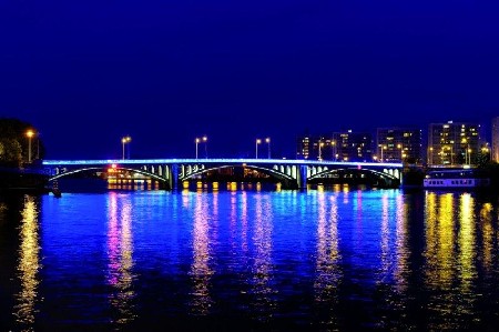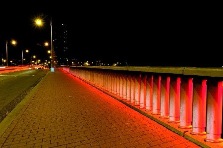 In Luik werd de brug Pont Atlas verfraaid met verrassende LED-lichteffecten van Philips, wat een totaal andere sfeer rond de brug creëert. De verlichtingsoplossing kan acht sferen of ‘scenario’s’ weergeven in een regenboog van kleuren.