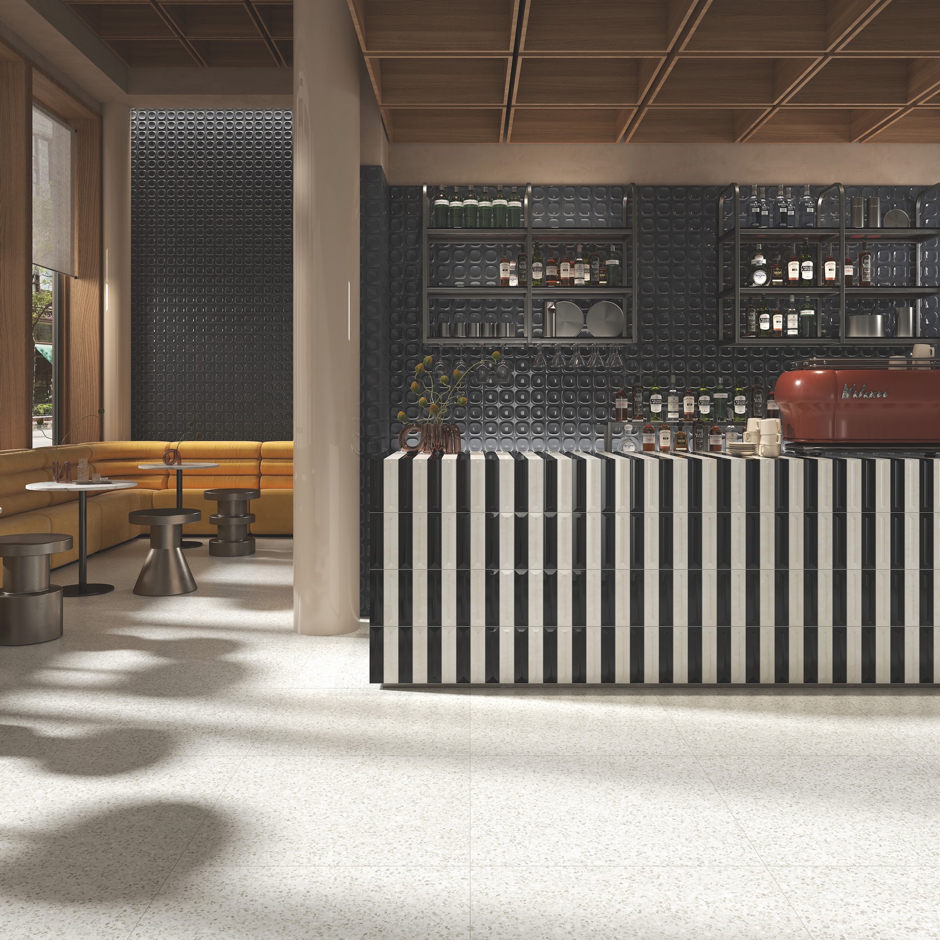 Pop is beschikbaar in twee keramische formaten: een rechthoekige strook van 6,2 x 25 cm en een vierkant van 10 x 10 cm, zowel in vlakke als driedimensionale varianten. Deze dualiteit biedt oneindige mogelijkheden die niet alleen unieke ruimtes scheppen, maar ook nieuwe textuur en geometrieën aan oppervlakken geven door het spel van licht en schaduw.