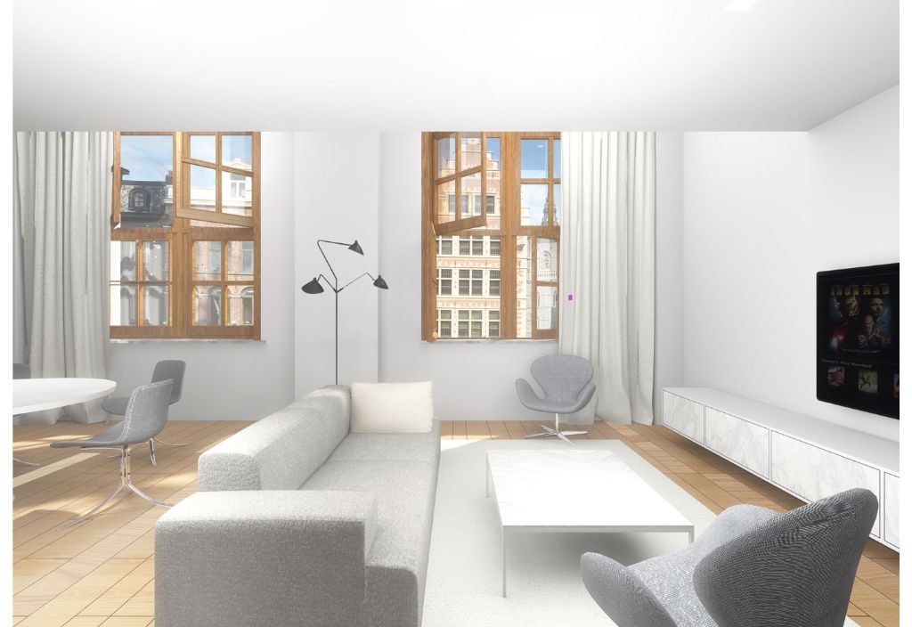 De bar, lobby en lounge hebben een prachtige lichtinval door de hoge ramen met uitzicht op de Graslei en de Sint-Michielshelling. De originele elementen van het gebouw, zoals de traphallen, gangen en plafondmoulures dienen als leidraad voor de inrichting.