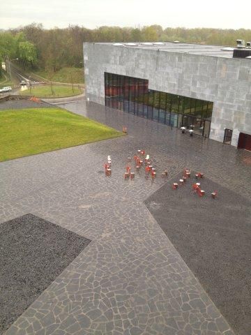 Zoals gezegd was de aanleg van het binnenplein en de omgevingsinfrastructuur de laatste fase van het project. Het was Kumpen die de coördinatie hiervan voor zijn rekening nam. Omdat het sterk afhankelijk was van het verloop van de andere werken op het terrein, was dit echter niet altijd even eenvoudig. “Aangezien we samen met heel wat andere aannemers op de site actief waren, vergde het wel wat tijd en moeite om alle werken op elkaar af te stemmen,” vertelt projectleider Theo Scheelen. “We konden enkel maar beginnen werken wanneer de rest klaar was en moesten dus stelselmatig te werk gaan. Zo lag de ondergrondse gang onder het plein (C-Tour) nog volledig open toen wij met de omgevingswerken moesten beginnen. Het spreekt voor zich dat we dit enkel met nauw overleg tot een goed einde hebben kunnen brengen. Bovendien waren we niet enkel afhankelijk van onze collega-aannemers, maar ook van het weer. Wanneer het regent, zijn de groeven in Herbeumont immers niet toegankelijk. De levering van de leisteen liep dus soms wel eens wat vertraging op, al is dit natuurlijk eigen aan het gebruik van zo'n natuurlijk product.”