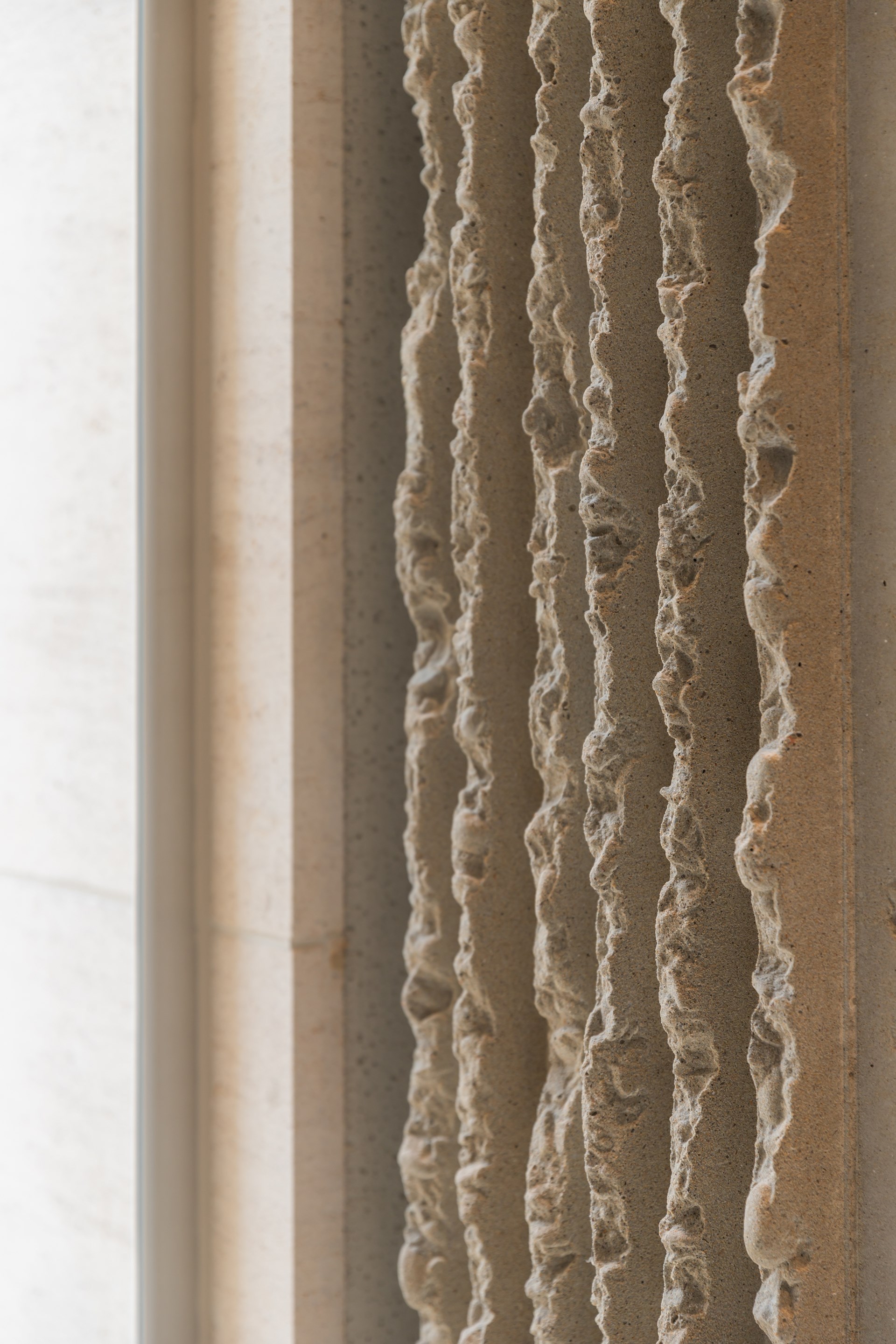Het project had een strakke timing omwille van de transitie tussen een vorige winkel van dezelfde eigenaar en een volledig nieuwe winkel met een ander concept. De tijd tussen afbraak en oplevering was dus heel beperkt. Maarten Durnez: “De herhaling van de elementen, die een hoge productiecapaciteit mogelijk maakte, was gezien de nauwe planning dan ook een meerwaarde. Daarnaast was het ook belangrijk dat na de plaatsing deze herhaling zo weinig mogelijk ‘voelbaar’ was in het eindresultaat. Dit is onder meer gelukt door onopvallende naden en een reliëf dat authentiek en natuurlijk aanvoelt. Om de connectie met de verweerde buitengevel te optimaliseren hebben we de productie in versnelde verwering uitgevoerd, door middel van zuring, om zo een verouderd effect te creëren. Het blad van de toog werd uitgevoerd in gladde beton en de binnendeur in ultrahoge sterktebeton, licht genoeg op een scharnier te pivoteren.”
